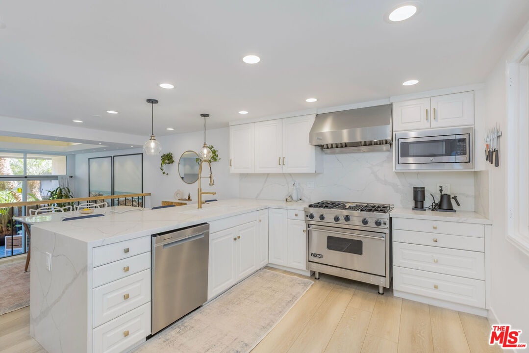 Turnkey, light-filled Villa Marina townhome with 3 bedrooms, including a rare wellness-focused primary suite.This fully renovated 3 bed, 2.5 bath home stands out in Marina del Rey for its unique blend of modern design and spa-level living. The expansive primary suite is a true retreat, featuring a steam shower, freestanding soaking tub, floating vanity, and a flexible enclosed bonus space, perfect as a home office, reading room, or the closet of your dreams. Two additional bedrooms with ample closet space, and another full bathroom complete the upstairs floor plan. Downstairs, vaulted ceilings and wide-plank flooring enhance the open, multi-level layout, with seamless flow to a private patio ideal for indoor-outdoor living and entertaining. The chef's kitchen is equipped with quartz countertops, custom cabinetry, a Viking 6-burner range, built-in GE Monogram refrigerator, and a brand-new Bosch dishwasher. Additional features include in-unit laundry, central AC, and a direct-access two-car garage with bonus flex space for a gym, studio, or kid's playroom. Villa Milano residents enjoy resort-style amenities including a heated saltwater pool, sauna, and lush landscaped grounds for a lower HOA fee than other nearby units. It's all just minutes from the beach, Marina bike path, Trader Joe's, Sugarfish, Burton Chace Park, and top-rated Short Avenue Elementary School.