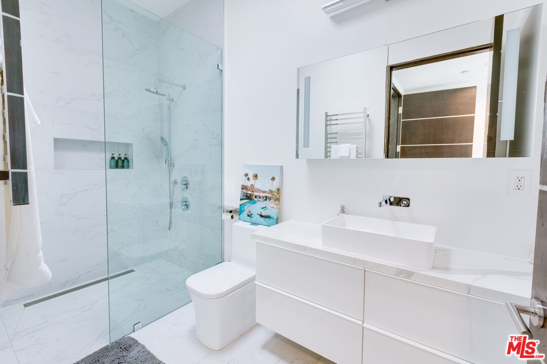 Located on a quiet Brentwood cul-de-sac just north of Sunset, this gated modern residence offers privacy, scale, and seamless indoor-outdoor living. The home features 7 bedrooms, with 5 capturing canyon and Getty Center views.Light-filled open-concept living spaces include formal living and dining areas and a chef's kitchen with center island, professional-grade appliances, walk-in pantry, and wine display.The primary suite offers a private balcony and spa-like bath with soaking tub, oversized shower, dual vanities, and walk-in closet. Additional ensuite bedrooms and a flexible media room complete the layout.Outdoor spaces feature multiple patios, a saltwater pool and spa, and lush landscaping. 2-car garage and motor court. Close to Brentwood Village, top schools, dining, and hiking trails.