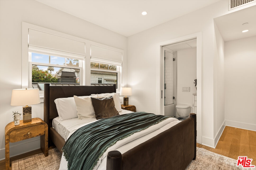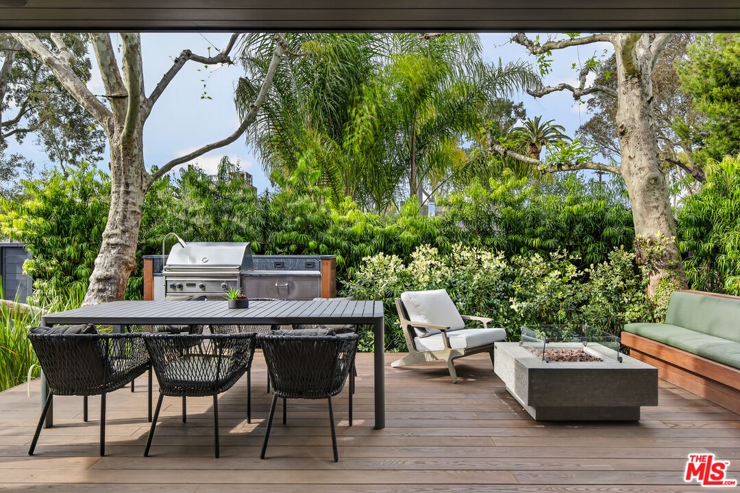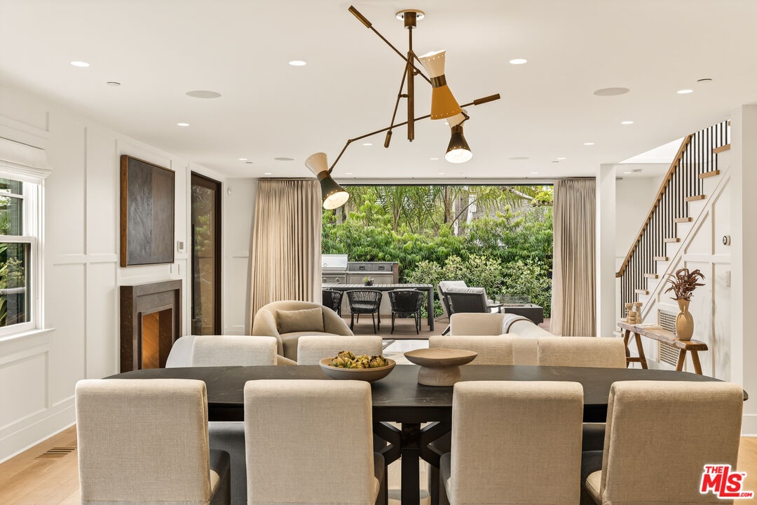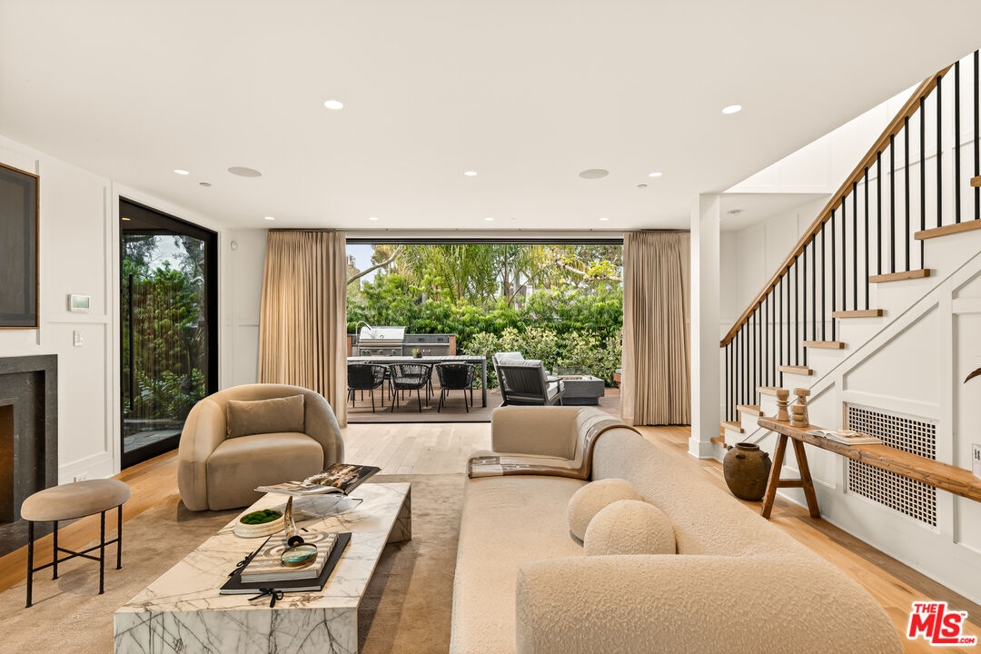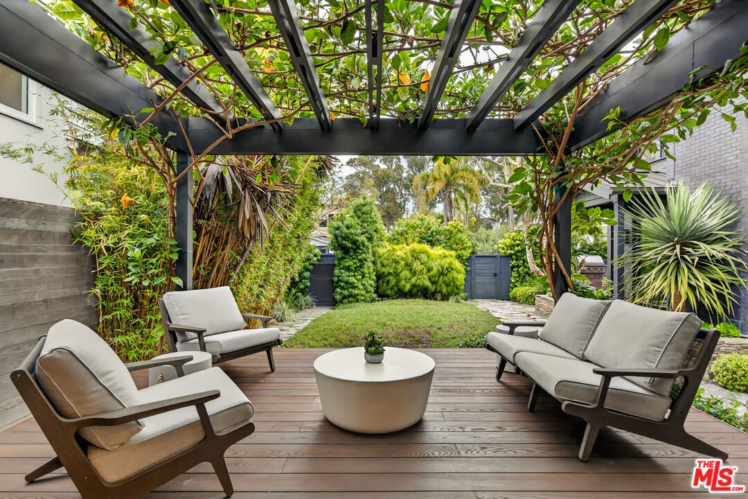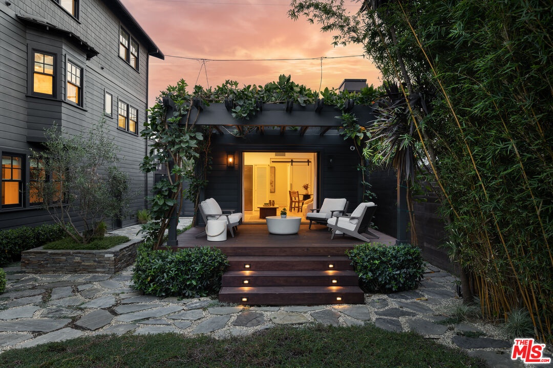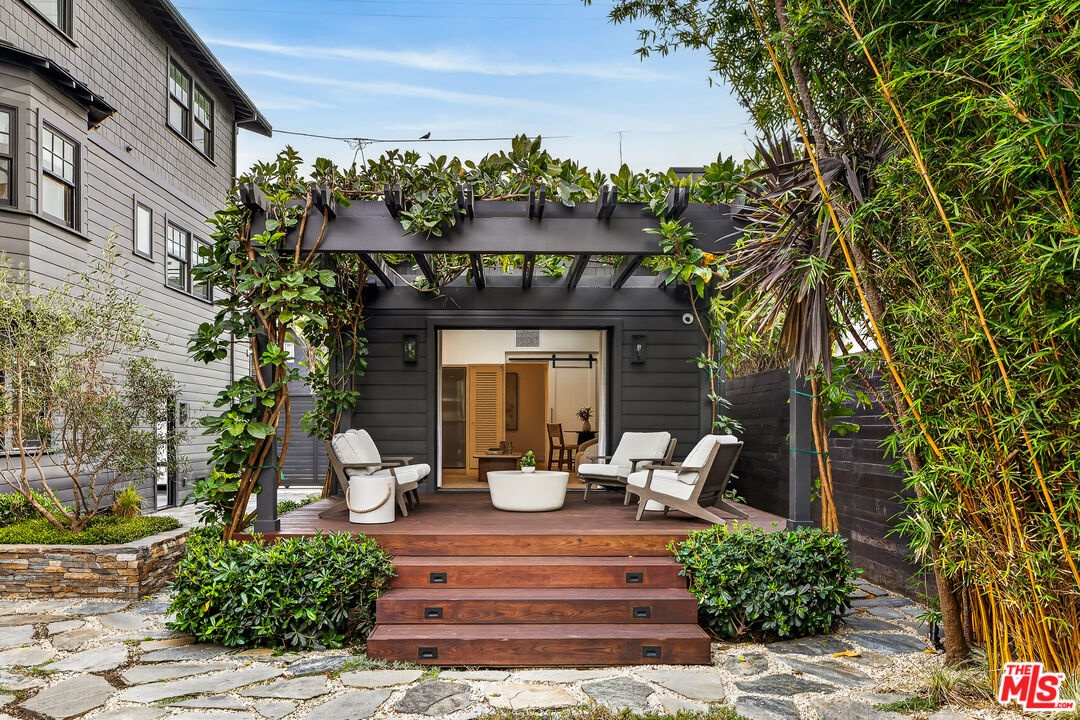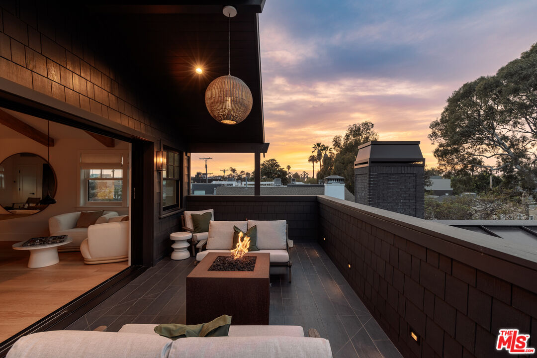 A rare opportunity just steps off Abbot Kinney, this exceptional Venice compound spans a double lot and features an exquisitely appointed main residence w/ a detached guest house/ADU, together creating a warm, soulful, and timeless retreat. Thoughtfully curated by Blinken Interiors, the property offers nearly 3,600 square feet of refined living space with a natural palette and an easy, modern sensibility. Set on one of Venice's most desirable streets and just a short stroll from the ocean, it delivers a rare blend of privacy, style, and effortless California living.Inside, a seamless connection to the outdoors creates an immediate sense of serenity. Handcrafted hardwood floors run throughout the open floor plan, while expansive windows and floor to ceiling sliding pocket doors fill the home with natural light and open to an impressive outdoor deck. Complete with a top of the line Viking grill and fire pit, the outdoor living space is designed for both entertaining and everyday enjoyment. The living room is anchored by a fireplace, creating a warm and inviting place to gather. The gourmet kitchen is both elegant and functional, featuring stone countertops, custom floating shelves and cabinetry, a Wolf range and oven, high end Thermador appliances, Newport Brass fixtures, and striking Otto Mueller Sistrah pendants above the island. Just beyond, the formal dining area is framed by a 1950s Silnovo Italian midcentury chandelier, while a nearby powder room adds a sculptural design moment with a Kelly Wearstler sconce inspired by the California coastline.Upstairs, skylights and Hinkley pendant lighting bring warmth and dimension to the stairwell. The second level includes two well appointed ensuite bedrooms, along with a private primary suite featuring exposed beam ceilings, picturesque windows, a fireplace, two custom walk in closets, and a spa like bath with a soaking tub, separate shower, and large vanity finished with Newport Brass fixtures in Midnight Chrome. The uppermost level offers a flexible lounge, creative space or another bedroom with its own ensuite bathroom, that opens to a large private deck with ocean air, treetop views, and mountain vistas. Whether used as an additional bedroom, office, or retreat, it is a space that easily adapts to the way you live. Completing the property is a beautifully designed detached 1 Bdrm/ 1 Bath guest house/ADU, ideal for extended stays, guests, or home office. With its own open living and kitchen area flowing out to a patio deck and expansive grassy yard, it adds both flexibility and value to this one of a kind offering. Set just a stone's throw from Abbot Kinney, this exceptional location places you at the center of some of Los Angeles' best restaurants, coffee shops, shopping, galleries, and more.