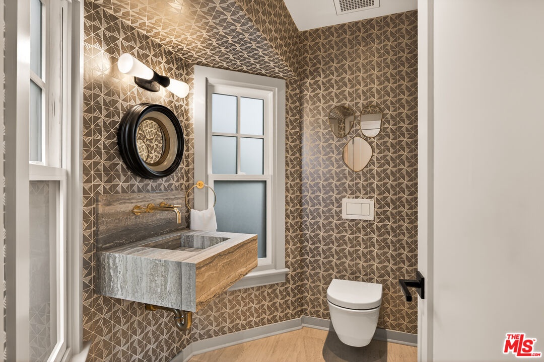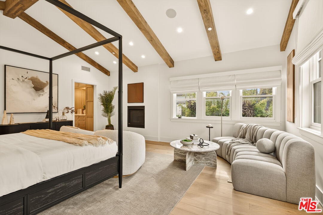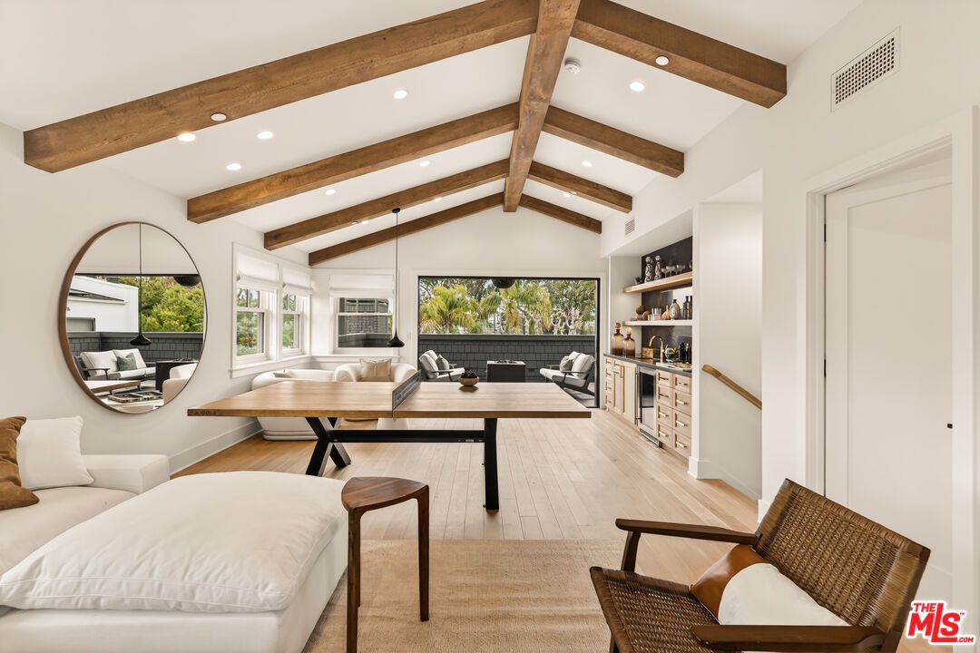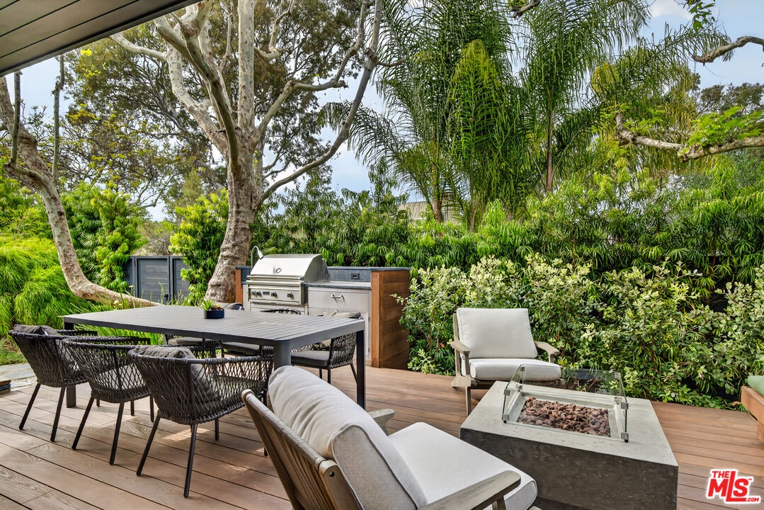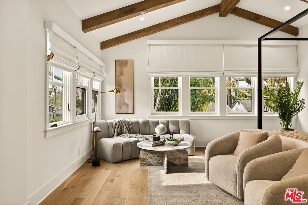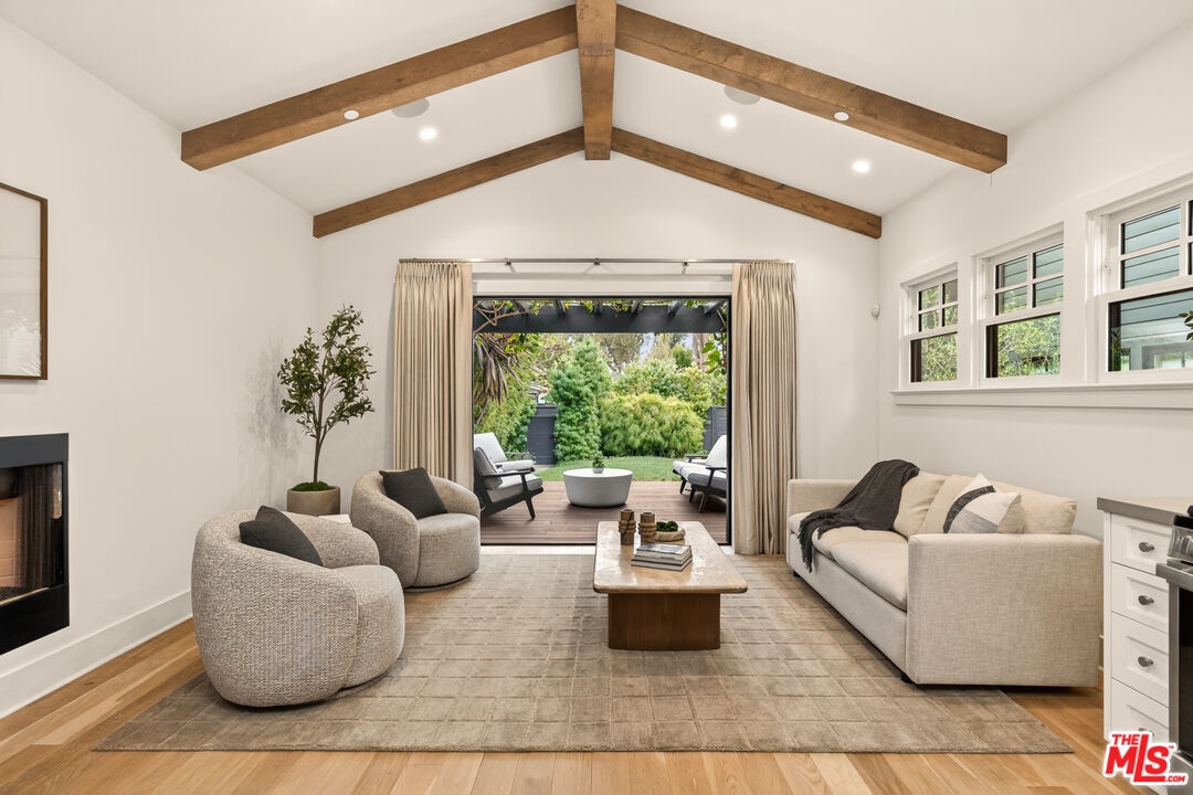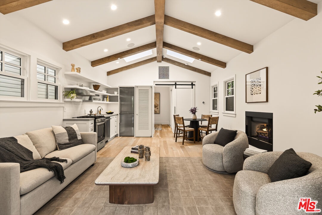 A rare opportunity just steps off Abbot Kinney, this exceptional Venice compound spans a double lot and features an exquisitely appointed main residence w/ a detached guest house/ADU, together creating a warm, soulful, and timeless retreat. Thoughtfully curated by Blinken Interiors, the property offers nearly 3,600 square feet of refined living space with a natural palette and an easy, modern sensibility. Set on one of Venice's most desirable streets and just a short stroll from the ocean, it delivers a rare blend of privacy, style, and effortless California living.Inside, a seamless connection to the outdoors creates an immediate sense of serenity. Handcrafted hardwood floors run throughout the open floor plan, while expansive windows and floor to ceiling sliding pocket doors fill the home with natural light and open to an impressive outdoor deck. Complete with a top of the line Viking grill and fire pit, the outdoor living space is designed for both entertaining and everyday enjoyment. The living room is anchored by a fireplace, creating a warm and inviting place to gather. The gourmet kitchen is both elegant and functional, featuring stone countertops, custom floating shelves and cabinetry, a Wolf range and oven, high end Thermador appliances, Newport Brass fixtures, and striking Otto Mueller Sistrah pendants above the island. Just beyond, the formal dining area is framed by a 1950s Silnovo Italian midcentury chandelier, while a nearby powder room adds a sculptural design moment with a Kelly Wearstler sconce inspired by the California coastline.Upstairs, skylights and Hinkley pendant lighting bring warmth and dimension to the stairwell. The second level includes two well appointed ensuite bedrooms, along with a private primary suite featuring exposed beam ceilings, picturesque windows, a fireplace, two custom walk in closets, and a spa like bath with a soaking tub, separate shower, and large vanity finished with Newport Brass fixtures in Midnight Chrome. The uppermost level offers a flexible lounge, creative space or another bedroom with its own ensuite bathroom, that opens to a large private deck with ocean air, treetop views, and mountain vistas. Whether used as an additional bedroom, office, or retreat, it is a space that easily adapts to the way you live. Completing the property is a beautifully designed detached 1 Bdrm/ 1 Bath guest house/ADU, ideal for extended stays, guests, or home office. With its own open living and kitchen area flowing out to a patio deck and expansive grassy yard, it adds both flexibility and value to this one of a kind offering. Set just a stone's throw from Abbot Kinney, this exceptional location places you at the center of some of Los Angeles' best restaurants, coffee shops, shopping, galleries, and more.