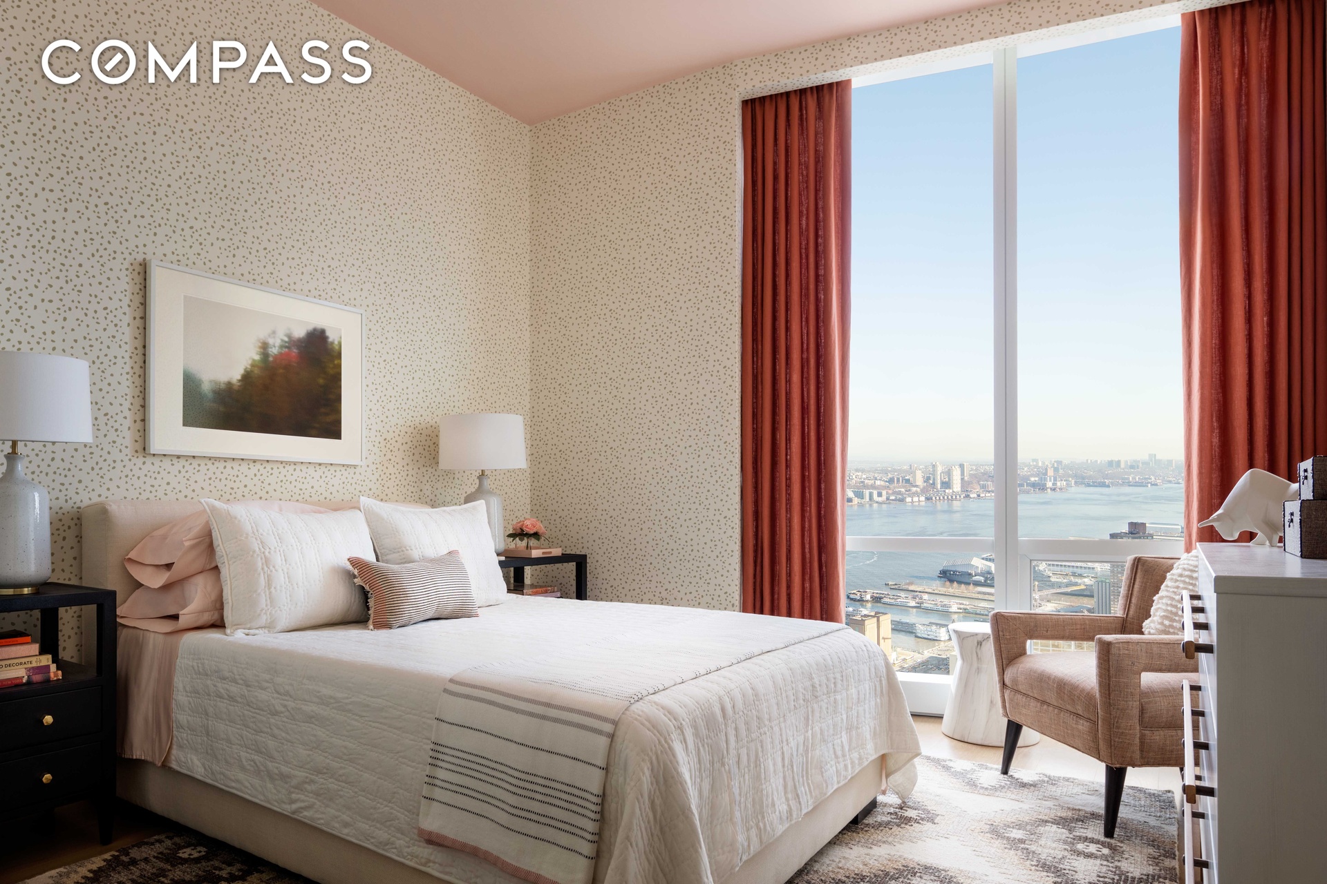 An inviting entry gallery perfect for your art collection leads to an amazing corner great room with 12 floor-to-ceiling windows revealing breathtaking 180-degree views. This expansive 2,241 SF residence offers 3 bedrooms and 3.5 bathrooms. The large open kitchen features a distinctive free-standing marble island, custom oak wood cabinetry, and Miele appliances including wine storage. The oversized primary bedroom features two large walk-in closets and a luxurious en-suite bath with a soaking tub and extra-large shower. Bedrooms 2 and 3 each feature en-suite baths and generous closet space. A side-by-side washer and dryer and a powder room for guests make this a truly special home.