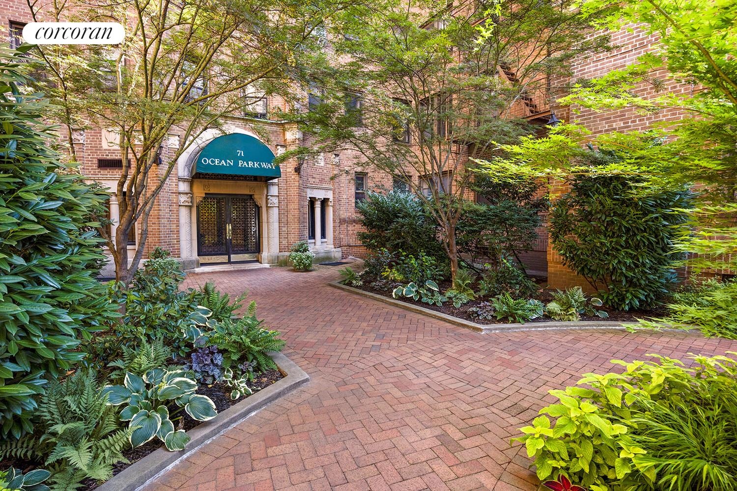 71 Ocean Parkway is an architecturally distinguished Art Deco building set behind a unique entry courtyard with lovely landscaping. This Windsor Terrace co-op, built in 1936, is financially sound, meticulously maintained, and welcomes pets. Residents enjoy an elevator, central laundry, a live-in super, gym, bike room, and storage (waitlisted). Just 1.5 blocks from Prospect Park and 3 blocks to the F/G train, with a dog park and an eclectic mix of neighborhood dining and shopping - including Elk Cafe, Brancaccio's, Batata, Hamilton's, Della, and more - right at your doorstep.