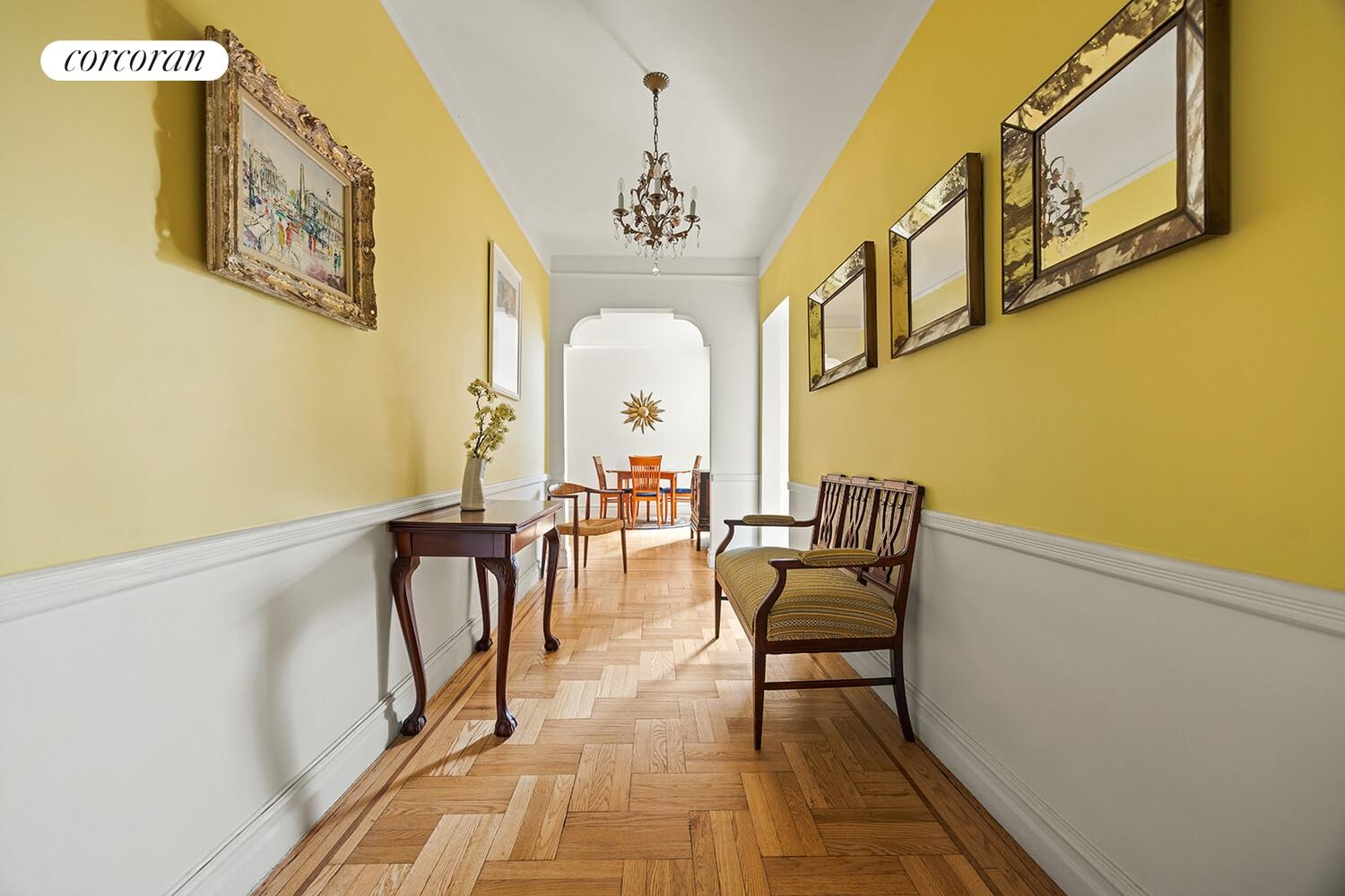 Enter into a welcoming entry hall with two walk-in closets - perfect for storing coats, shoes, and all the extras that come with city living. A separate foyer just to the left provides surprising additional space, perfect for a dining table, reading nook, or work-from-home setup, and flows naturally into the expansive living and dining room with endless flexibility for how you choose to live and entertain.