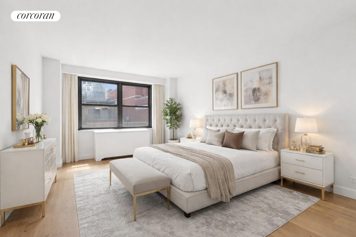 Ideally situated on a quiet, tree-lined block between Lexington and Park Avenues, the property offers excellent access to Grand Central Terminal, the 6 train, crosstown buses, and major commuter routes. Neighborhood dining, cafes, grocery options, and everyday conveniences are all close at hand, making this home a compelling choice for those seeking a renovated, move-in-ready two-bedroom with outdoor space, views, and full-service amenities in the heart of Murray Hill.