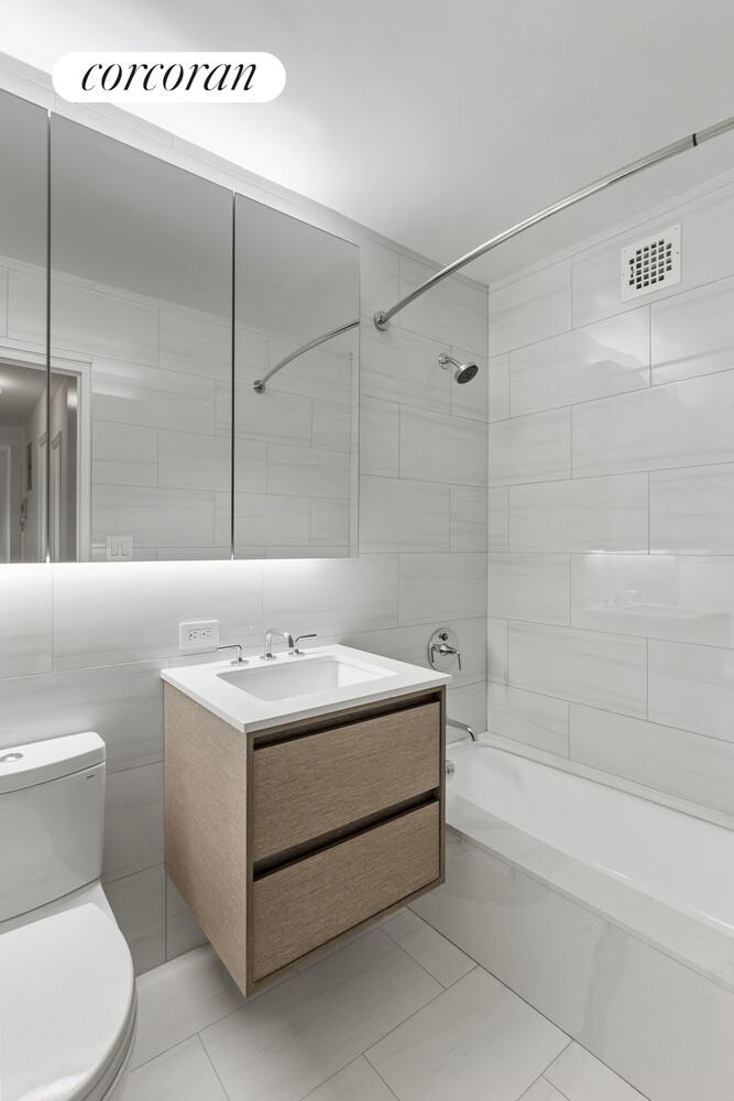 The split two-bedroom, two-bath layout is highly practical and sought after, with excellent separation for privacy. The primary suite includes a beautifully finished en-suite bath and customized closets. The second bedroom is generously proportioned and versatile, well-suited for guests, a home office, or multi-purpose use. The second full bath is finished to the same high standard, creating a cohesive, elevated design throughout.