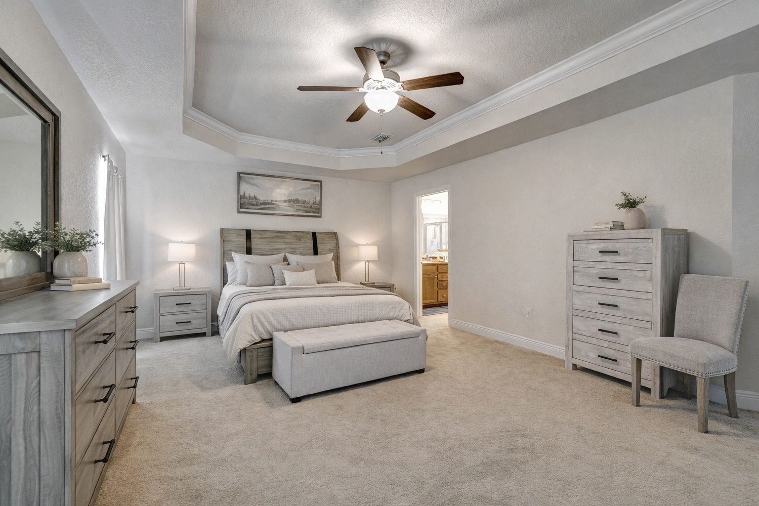 The split-bedroom floor plan offers ideal functionality and privacy, highlighted by a spacious owner’s suite retreat with a large walk-in closet and a well-appointed ensuite bath.