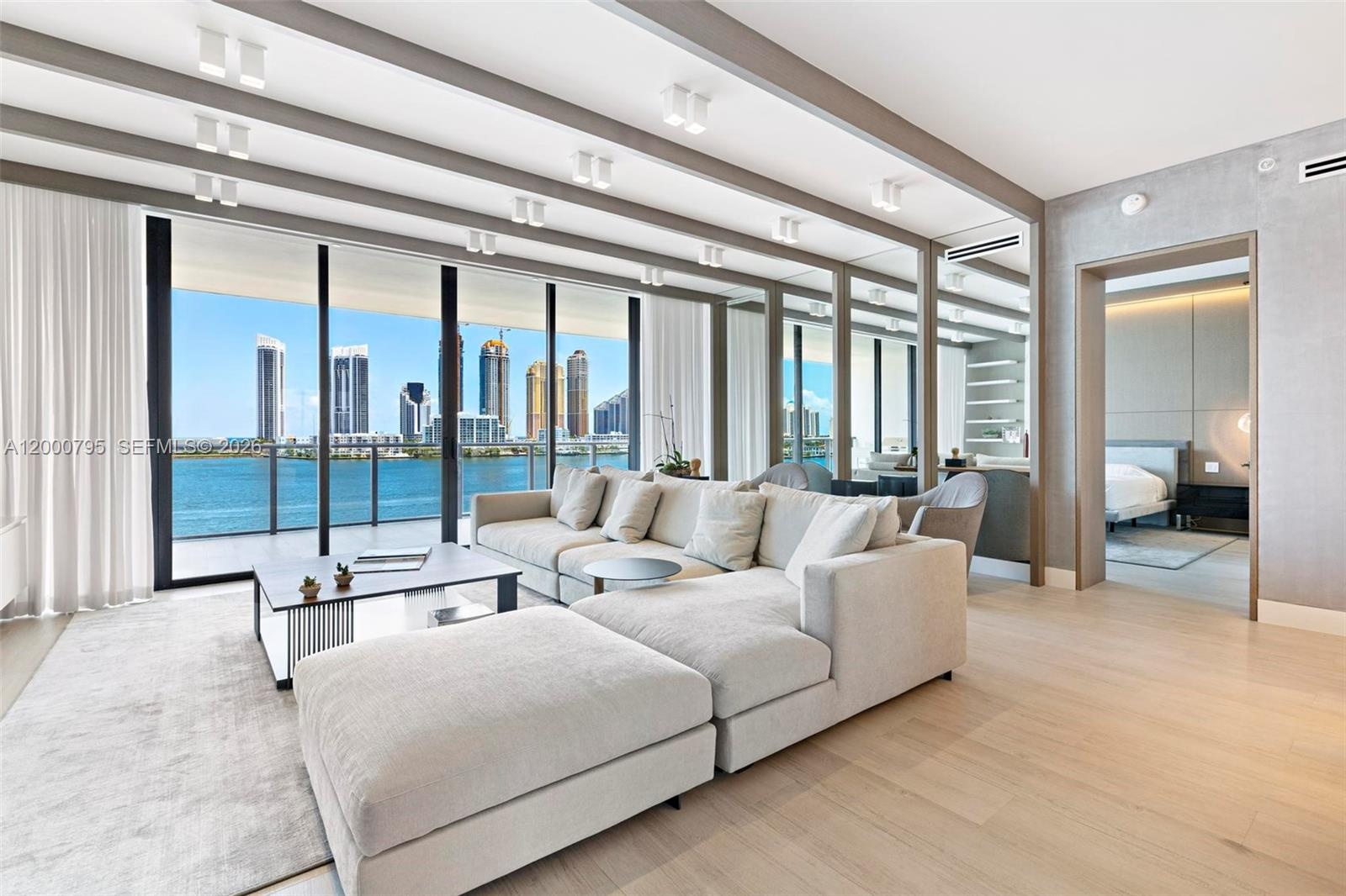Amazing waterfront residence at PRIVE CONDOMINIUM situated on a private island surrounded by water. This unit features a flow-through layout with 3 bedrooms/4.5 baths and family room/Den.Enjoy breathtaking ocean views, Intracoastal, and city skyline. Fully furnished. Prive offers world-class services, top-notch security, and amazing amenities, which include an impressive and modern fitness center, 2 swimming pools and pool bar service, wine and cigar lounge, 24-hour concierge, valet service, tennis court, full-service marina and much more.