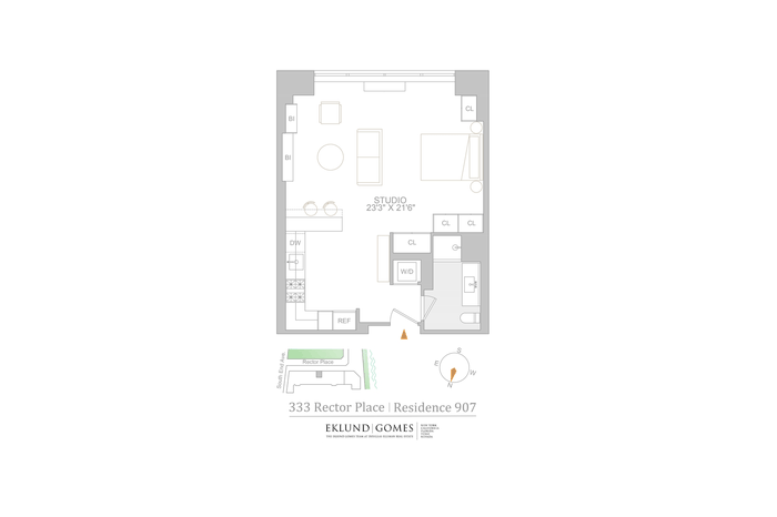 Welcome to Residence 907 at One Rector Park a high floor, south facing studio with Hudson River views, offering bright, refined living in the heart of Battery Park City.