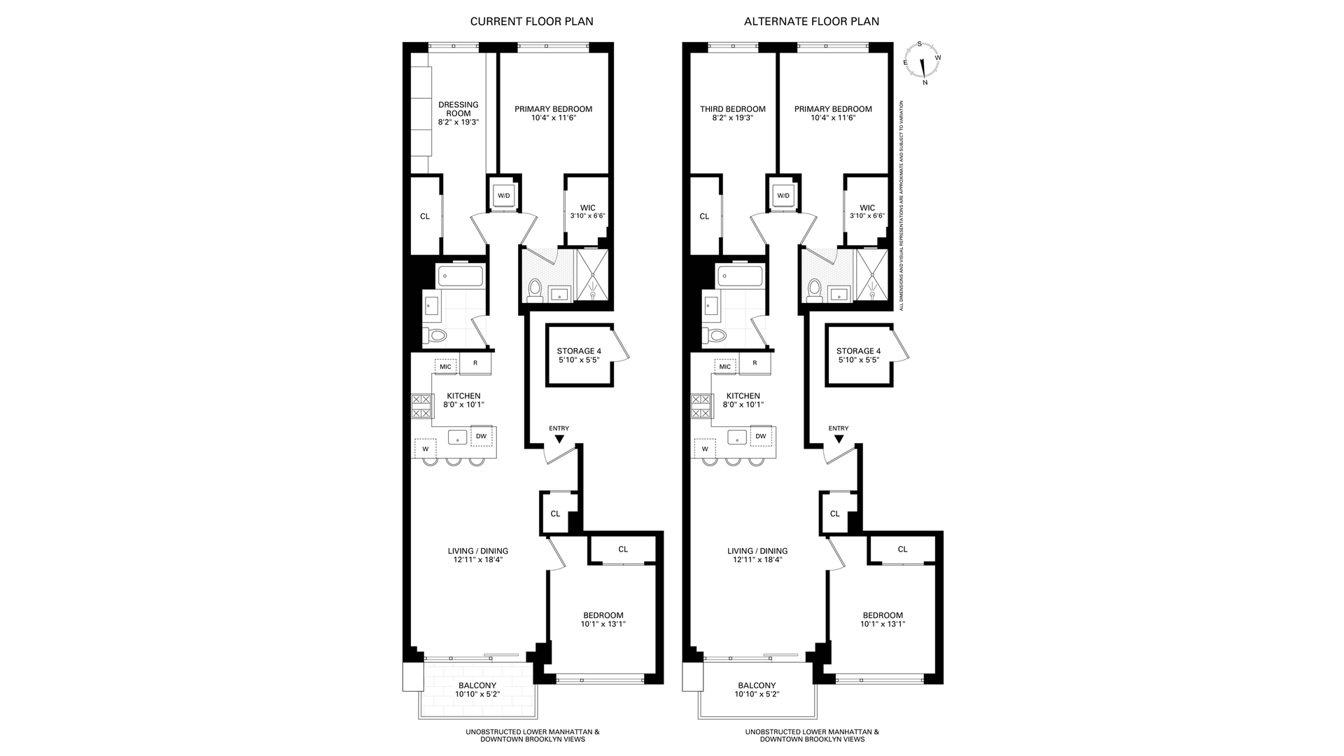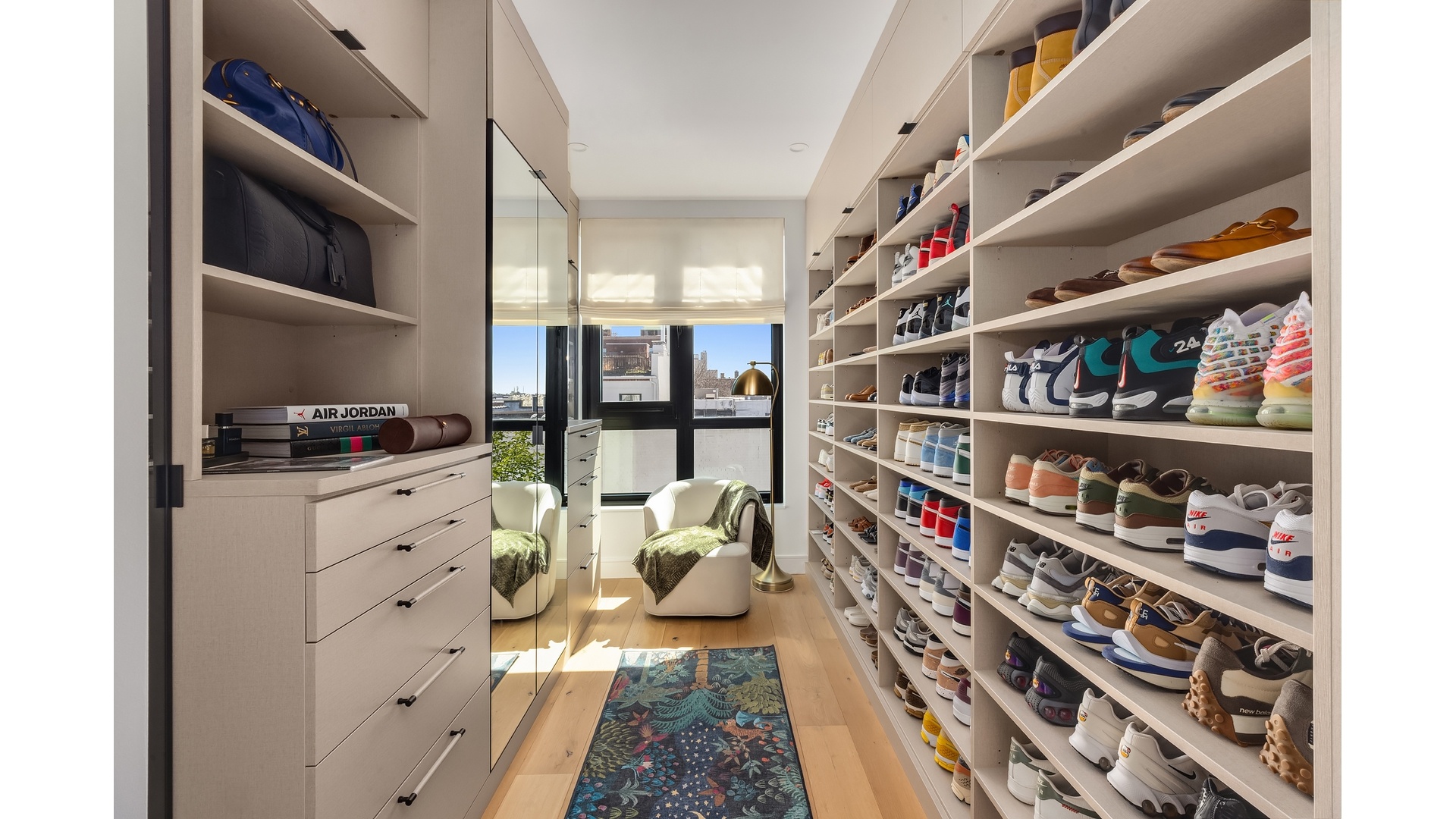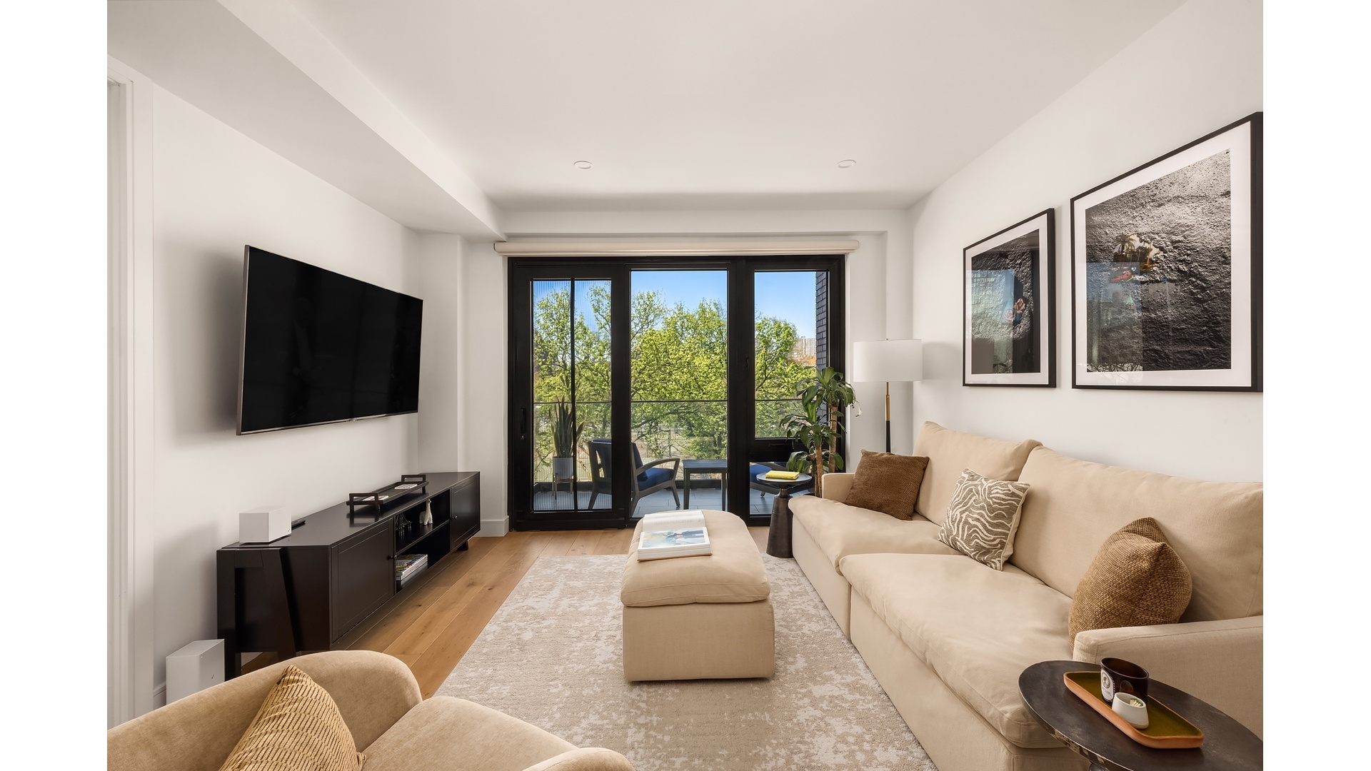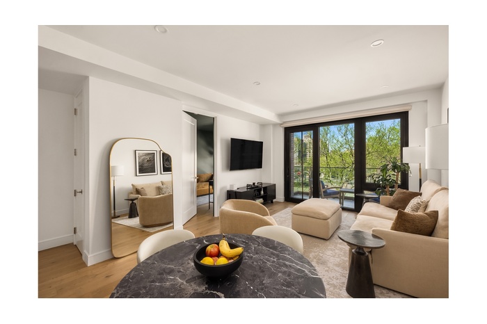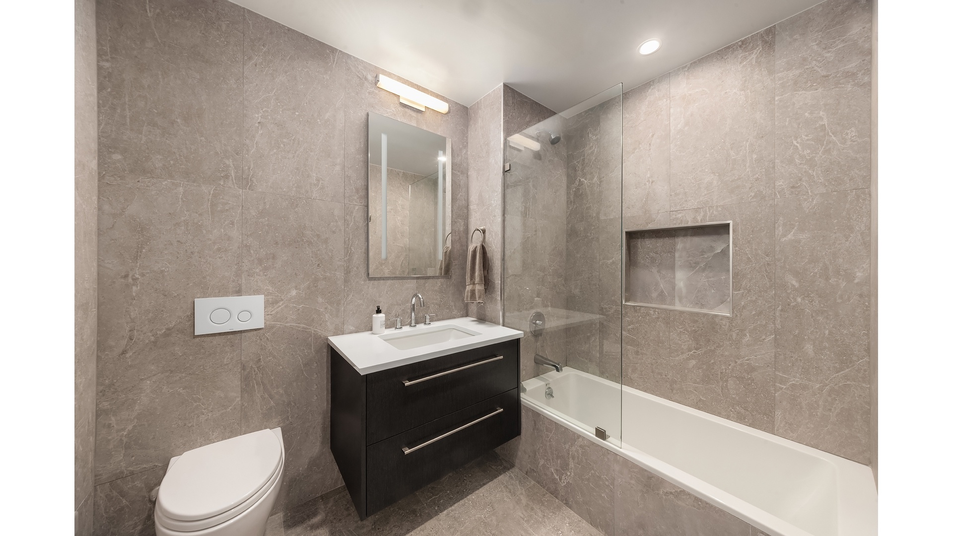 Residence 4B is a large floor through home offering three spacious bedrooms (one of which is currently being used as an exquisite dressing room with built in closets,) two bathrooms, and a terrace which offers unobstructed views of lower Manhattan and downtown Brooklyn. The open chef's kitchen offers top of the line Thermador appliances, custom Downsview cabinetry and timeless Italian marble countertops. The primary bath offers the perfect sanctuary with statuary marble finishes, Toto fixtures and custom Robern medicine cabinets. The secondary bathroom features a deep soaking tub from Porcelanosa, custom marble tile and storage.
