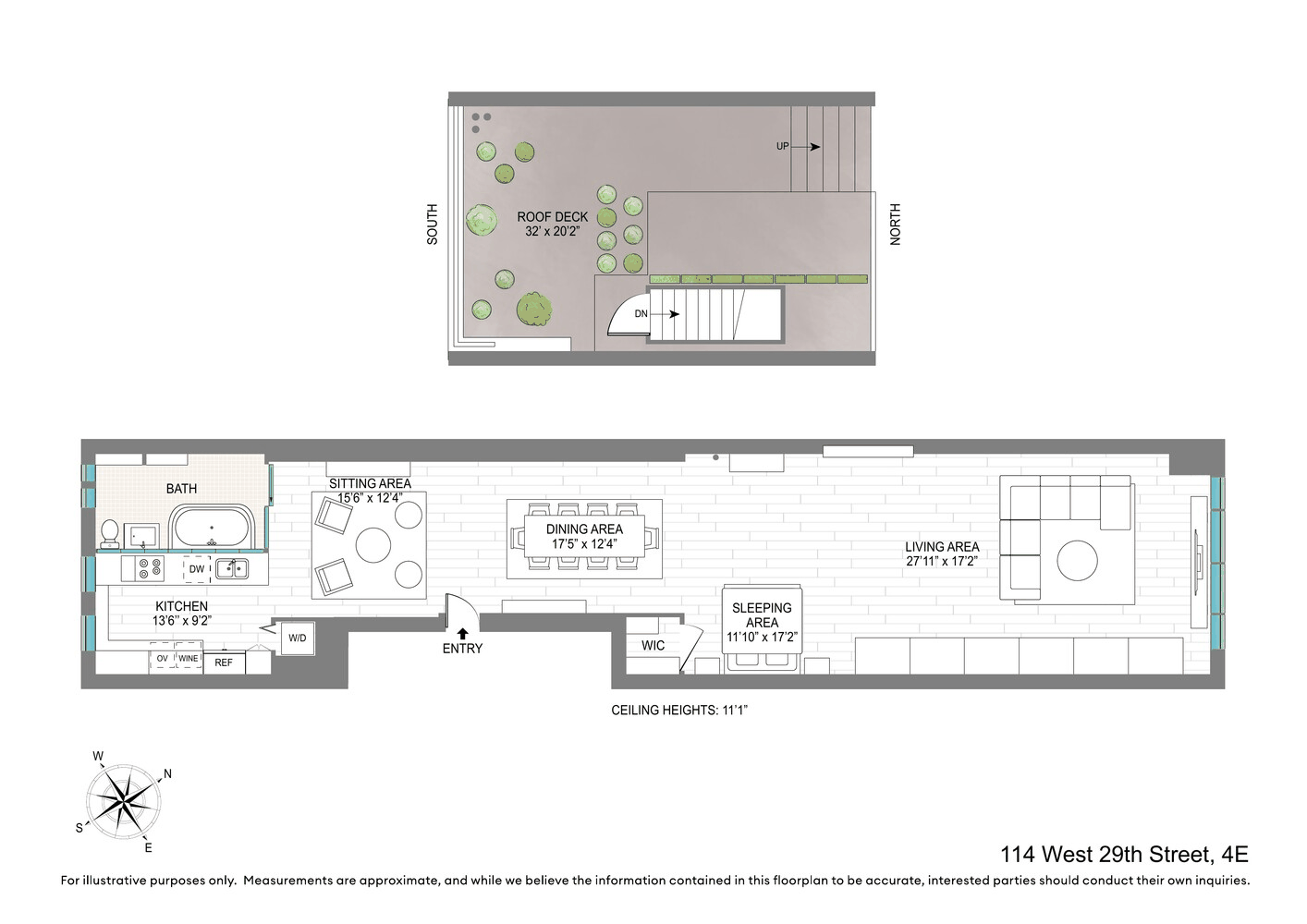 Occupying the entire 4th floor of a boutique cooperative, the Penthouse at 114 West 29th Street is a rare 1,500-square-foot loft residence ideally situated at the intersection of Chelsea and NoMad. This exceptional home features soaring 11' ceilings, oversized windows, original hardwood floors, and custom architectural detailing throughout. The result is a quintessential New York City residence that seamlessly blends prewar character and classic artist-loft proportions with refined modern design and abundant natural light.