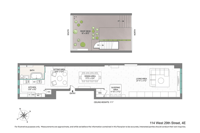 Occupying the entire 4th floor of a boutique cooperative, the Penthouse at 114 West 29th Street is a rare 1,500-square-foot loft residence ideally situated at the intersection of Chelsea and NoMad. This exceptional home features soaring 11' ceilings, oversized windows, original hardwood floors, and custom architectural detailing throughout. The result is a quintessential New York City residence that seamlessly blends prewar character and classic artist-loft proportions with refined modern design and abundant natural light.