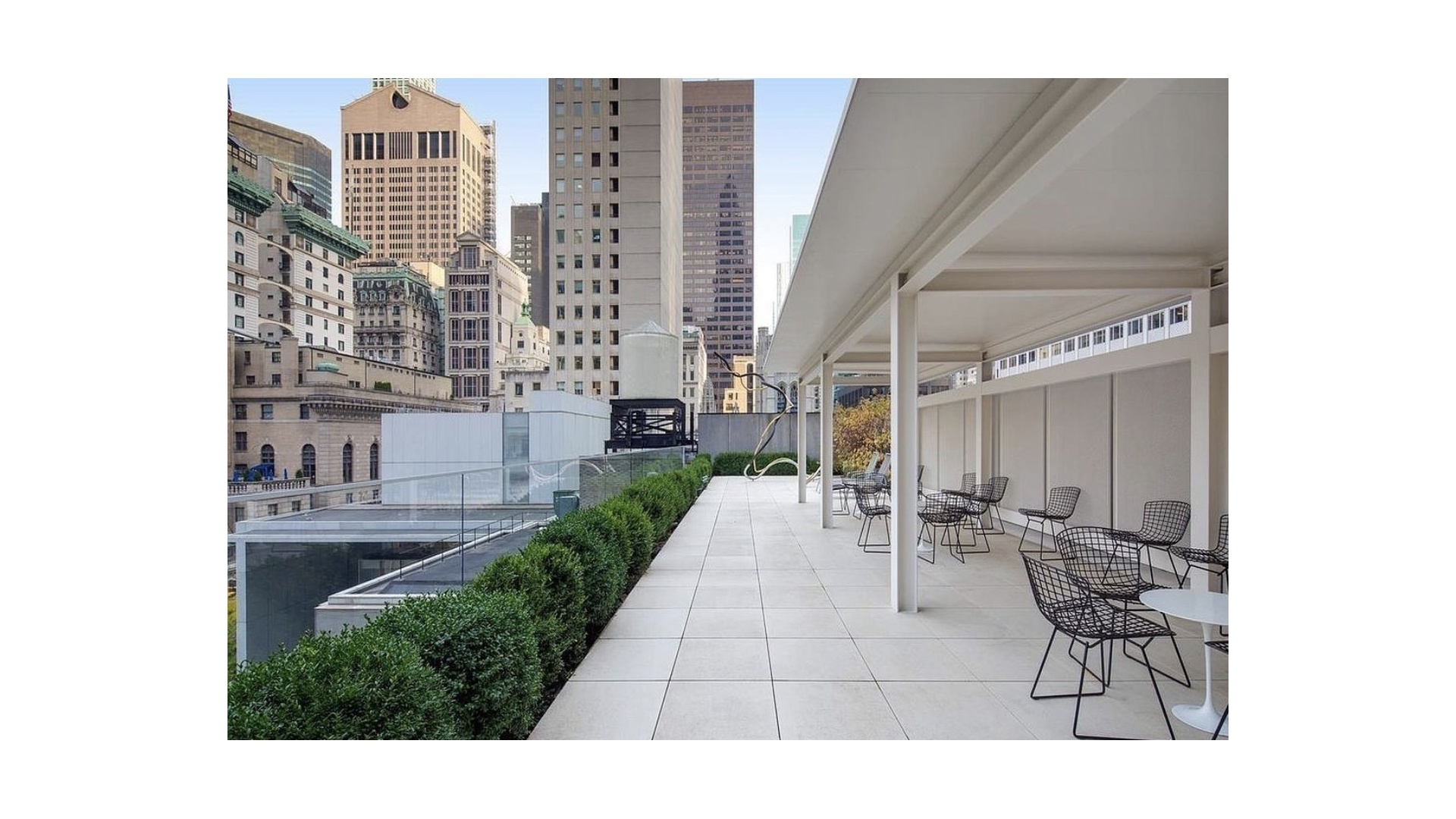 Additional services available upon request include housekeeping, reflecting the building's commitment to providing an exceptional living experience. The beautifully landscaped roof terrace provides a serene outdoor space overlooking the MOMA gardens, allowing residents to unwind amidst stunning surroundings.