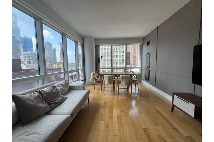 Located in prime Midtown Manhattan, this luxury condo spans 741 sq ft, featuring 1 bedroom and 1 bathroom with 9-foot floor-to-ceiling windows that flood the space with natural light and offer expansive south- west facing views.