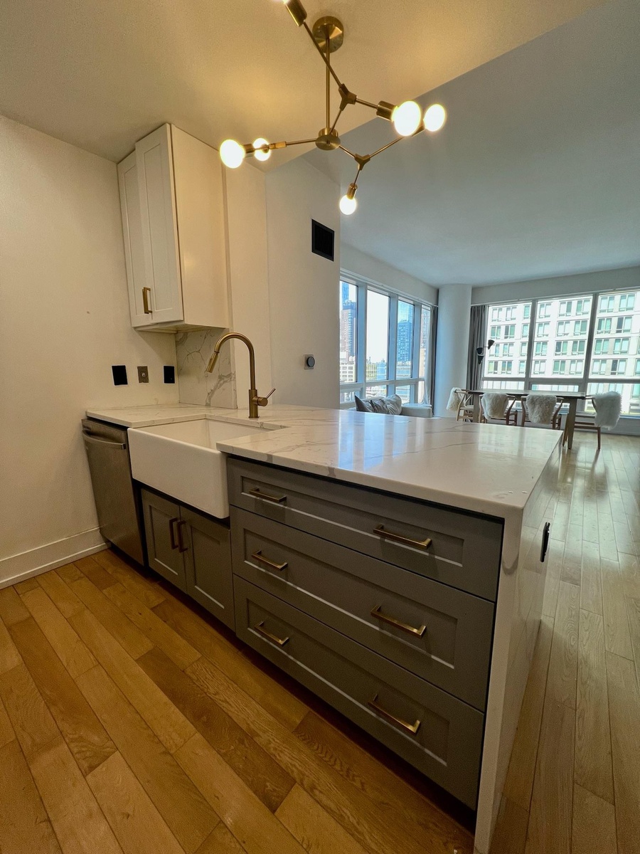 The condo was RENOVATED in 2022 with A BRAND NEW KITCHEN AND UPDATED BATHROOM. Beautiful waterfall countertop with farmhouse kitchen. Hardwood floors throughout create a warm ambiance, complemented by a limestone bathroom featuring a deep soaking tub and exquisite Waterworks fixtures.