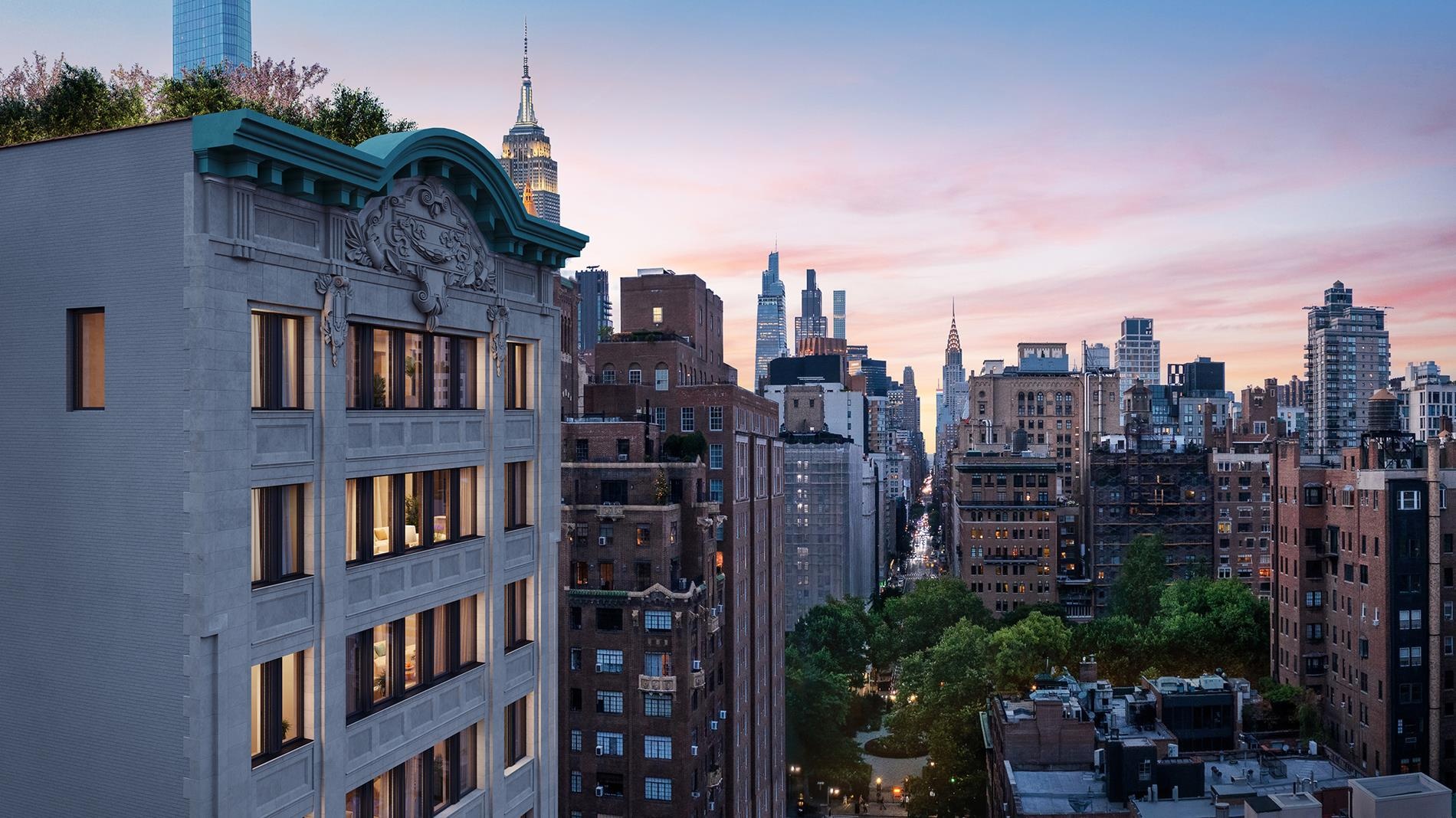 Amenities include a fitness center, screening room, children’s playroom, and a landscaped south-facing rooftop lounge with outdoor kitchen and views over Union Square Park. The building offers full service with a refined lobby, package room with cold storage, a 24-hour doorman, and a full-time building manager. The ground floor will be home to Danny Meyer’s Maialino, marking its anticipated return to the neighborhood.
