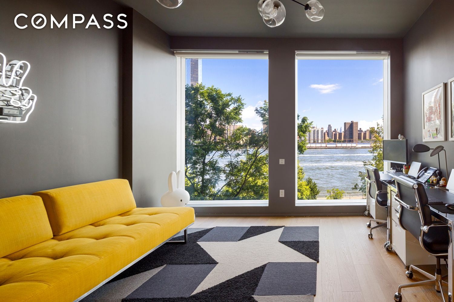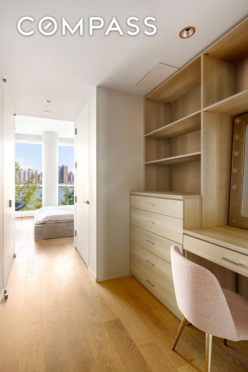 Located tree high on the third floor 3C is a testament to DUMBOs history with a modern loft design and thoughtful integration with one of the more private city parks dotting the river. Graced with the building’s largest windows, you walk into the apartment and feel you’re hovering just above the river. To one side of the room is a windowed bonus room that works well as a home office or guest room. On the other side, an oversized kitchen blends seamlessly into the back of the room and the 10’ kitchen island creates a center for gathering. Hidden behind the kitchen is a large laundry and pantry room for even more storage. The kitchen gives way to the large floorplate for dining and living that nestle up against the priceless vista. The floor-to-ceiling windows, 10-foot ceilings, and wide-plank white oak flooring CityRealty set a warm, refined tone throughout. The views (did I mention them yet?) are nothing short of spectacular — sweeping sightlines of the Manhattan Bridge, the Manhattan skyline, and lush John Street Park.