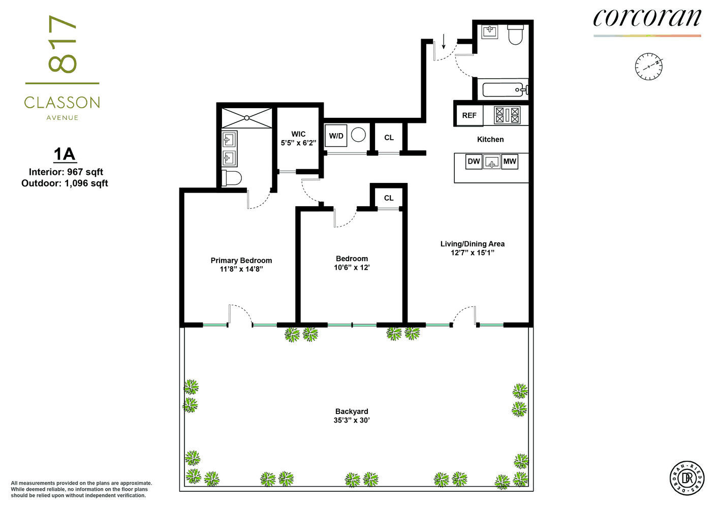 Unit 1A is a spacious 2 bed, 2 bath with an enormous private garden that faces east. There is no other garden apartment like this on the market. Situated in the back of the building with no street exposure assuring maximum privacy and quiet too.