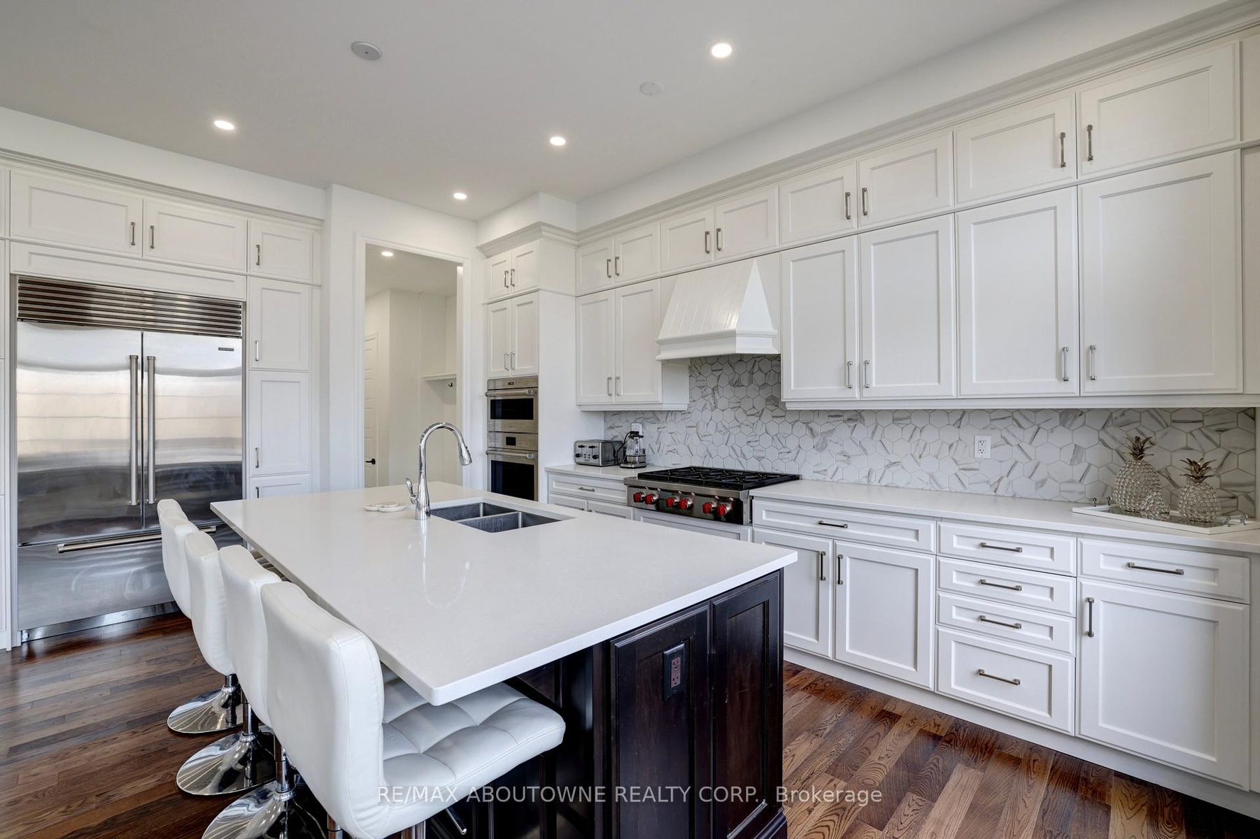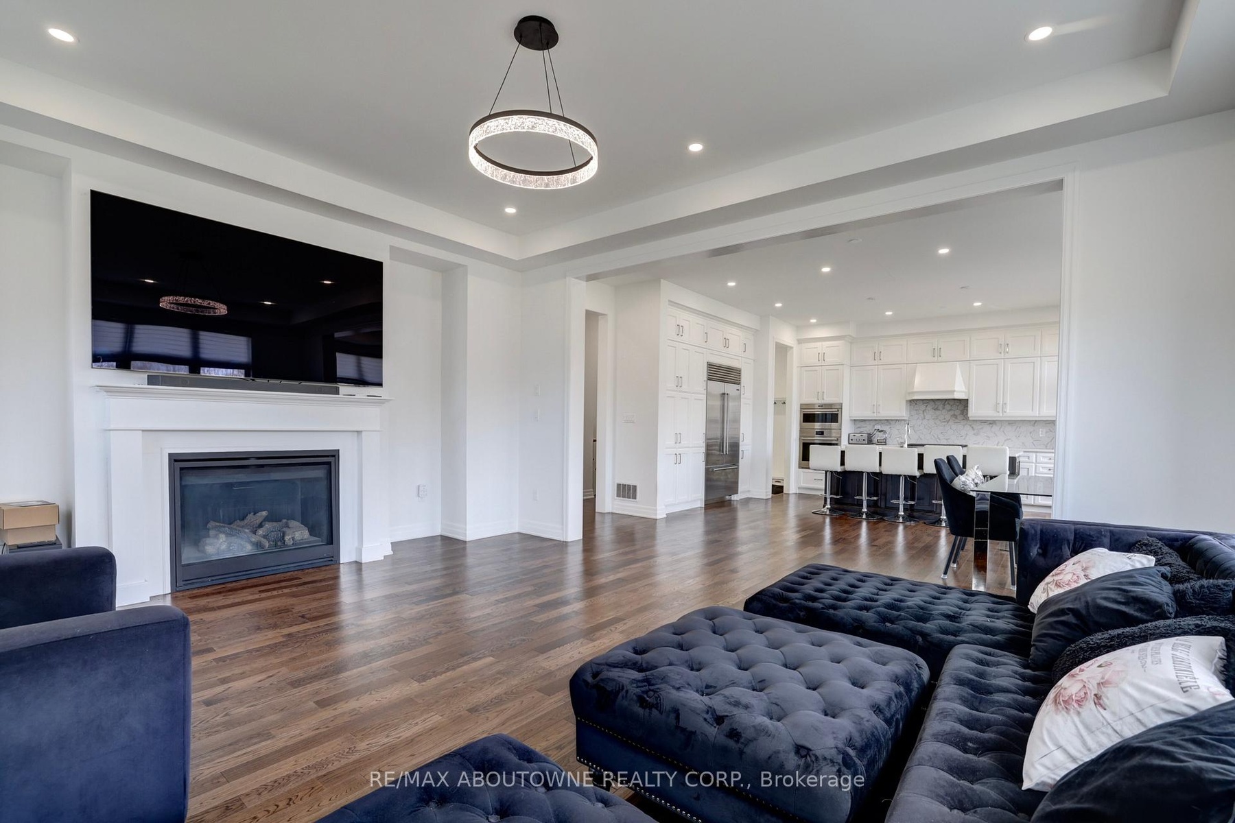 Offering over 3,700 sq. ft. of beautifully designed living space, this exceptional Mattamy-built residence features 10' ceilings on the main floor and 9' ceilings on the second level and the walk-out basement, creating an open, airy feel throughout. Designed with modern family living in mind, the open-concept layout showcases a spectacular chef's kitchen complete with high-end appliances, including a Sub-Zero fridge and Wolf range. The oversized island serves as the perfect gathering place, while expansive windows flood the space with natural light and seamlessly connect the kitchen to the inviting family room with a elegant gas fireplace. A separate dining room with a convenient servery is ideal for formal entertaining, while a private main-floor office offers the perfect work-from-home setup. The thoughtfully designed mudroom with custom built-ins adds everyday functionality. Upstairs, the luxurious primary suite features elegant tray ceilings, dual custom walk-in closets, and a spa-inspired ensuite with a glass-enclosed shower and freestanding tub overlooking tranquil green space. Three additional generously sized bedrooms, each with ensuite access and most with custom closets, provide comfort and privacy for the whole family. Plus an extra large media room that could be turned into a 5th bedroom.The second floor laundry room is bright and spacious. The walk-out basement with oversized windows offers endless potential for additional living space. Set on an impressive fully fenced 60 x 152 ft lot, this home enjoys true privacy and rare pond and ravine views, with direct access to trails and nature. Relax or entertain on the main-level deck while taking in the serene surroundings