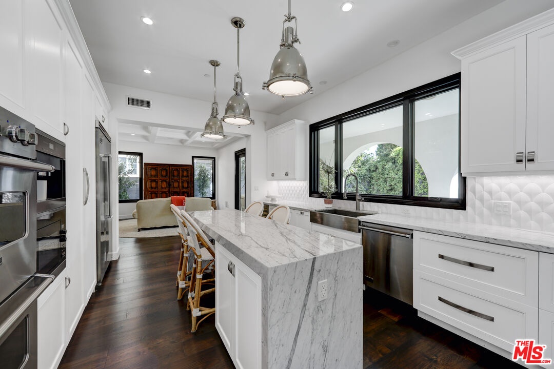 Introducing a refined expression of contemporary mediterranean luxury in the heart of Beverly Hills. This exceptional two-story residence is masterfully designed to offer a seamless blend of sophistication, comfort, and effortless California living.Upon entry, you're welcomed into a luminous living space defined by coffered ceilings, rich hardwood flooring, and a striking contemporary fireplace an elegant setting for both intimate gatherings and grand entertaining. The open-concept design unfolds into a chef-caliber kitchen appointed with premium stainless steel appliances, custom cabinetry, and sleek, designer finishes that balance form and function with precision. The upper level is anchored by a lavish primary suite, thoughtfully designed as a private sanctuary. Indulge in the spa-inspired bath featuring a deep soaking tub, a glass-enclosed shower, and an expansive walk-in closet tailored for a curated lifestyle. Outdoors, a resort-style backyard offers a serene escape, complete with a sparkling pool and ample space for al fresco dining and entertaining under the Southern California sun. Set within one of the most coveted neighborhoods in Beverly Hills, just moments from iconic dining, luxury shopping, and premier entertainment, this residence represents a rare offering of modern elegance and elevated living.