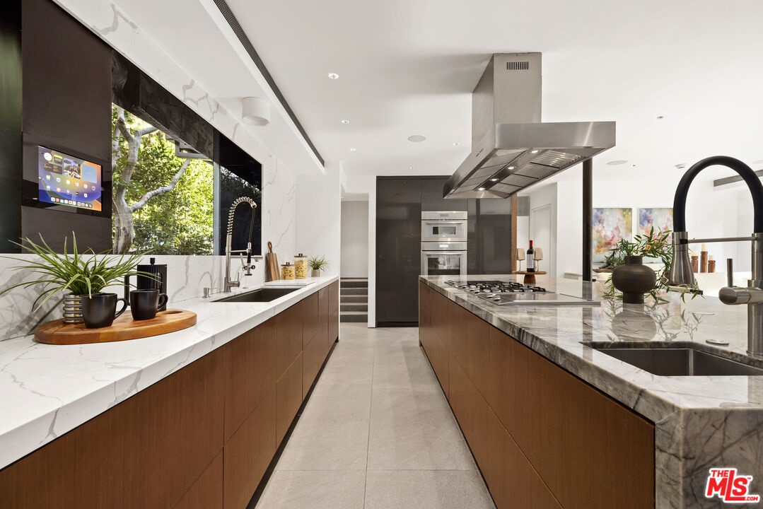 Get away from it all on a prestigious, quiet, cul-de-sac street in Lower Bel Air. An ideal house for anyone seeking a peaceful and private life close to LA's activities. Best Location, *One mile to Sunset Blvd and The Bel-Air Hotel,*10 minutes to the 405, *multiple grocery stores, *countless restaurants, *fitness gyms, *museums, *parks and hiking, *10 minutes to San Vicente, Westwood, Sunset Strip and Beverly Hills, *20 minutes to the beach, *So-fi and LAX Within 20 minutes of most of LA's premiere primary and secondary schools, *5 Minutes to UCLA. Best Design and Amenities, *Well-planned, *low maintenance, *3,550sf two-story 4-bedroom home with luxury finishes and appliances, *Mediterranean-like hillside views, on a lushly landscaped 16,275-sf lot,* Lush, curated garden views from every window, *Over 190' of prestigious street frontage with gated off-street parking and 2-car garage accommodating 6 cars total, *Living Room with 10-foot ceilings, *dining room with wine storage, *family room with entertainment center, *kitchen bar seating all are connected to the outdoors via 16 foot wide terrace doors, *App-controlled instant hot water loop, lighting, heating and AC, kitchen appliances, laundry center, irrigation and garage door, *Heated floors in kitchen, family room and dining room, *Gourmet kitchen with all-drawer walnut cabinetry and luxury appliances from Thermador, Miele and Gaggenau featuring a 12-foot-long Brazilian Quartzite double-wide island Double, built-in Gaggenau refrigerators and triple Thermador oven and quad cooktop units with choice of gas, electric and teppanyaki cooking modes, *Wood burning and gas fireplaces, *Two of 4 spacious bedrooms are en-suite all with exceptional privacy, *Backyard and patio areas are generously-sized with over 2,000 sf of outdoor living and entertainment space