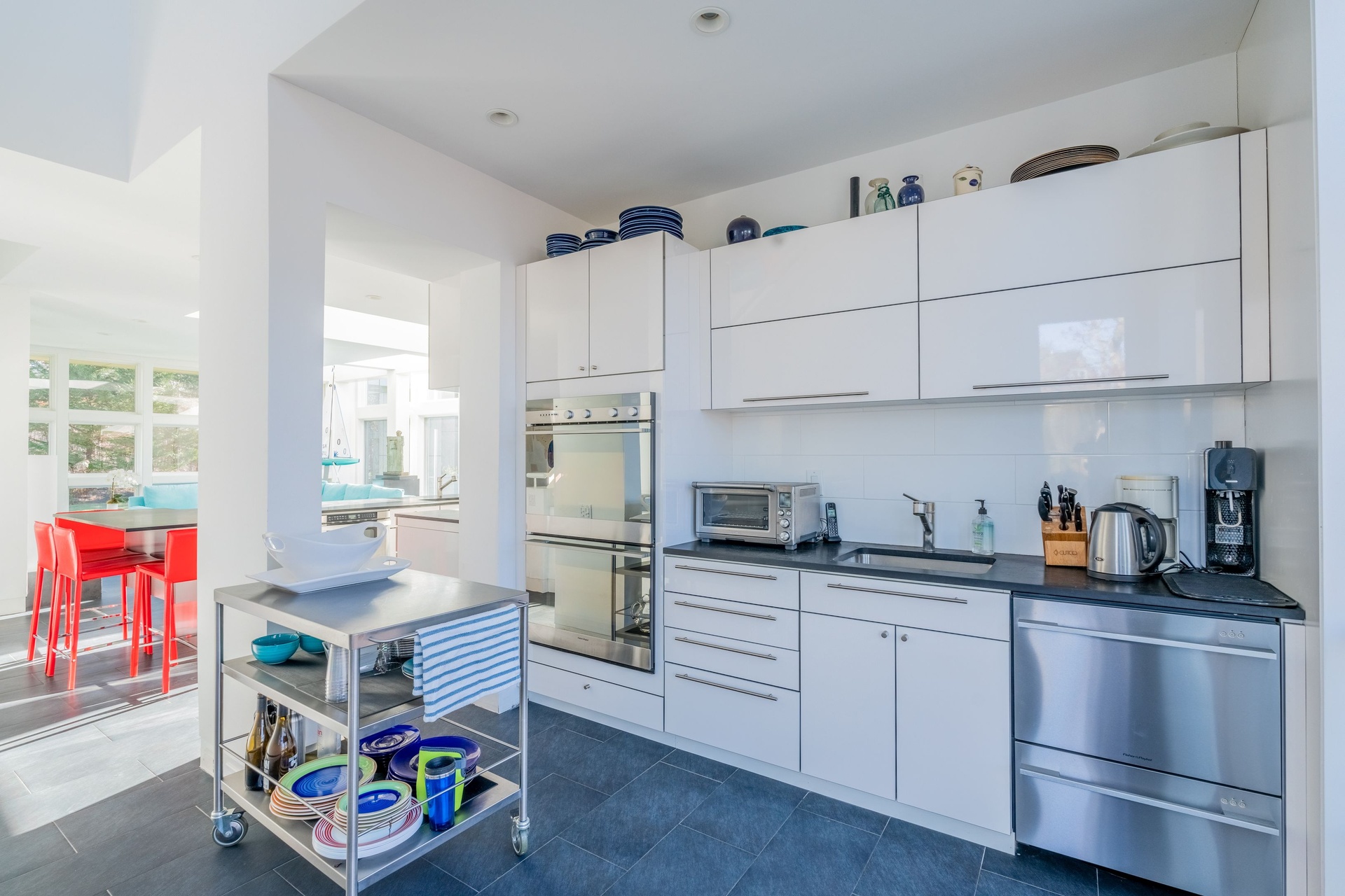 This modern home is filled with light and surrounded by nature. With clean stylish finishes and beautiful furnishings throughout you will be comfortable the moment you arrive and probably won't ever want to leave! Open living, kitchen and dining area. The living space spans across three levels with four bedrooms, three and a half baths. Great primary and additional large ensuite with own private deck on the second level. Roof has a deck with incredible bay views and sunsets every day! Schedule your appointment to view this wonderful home before it is too late!
