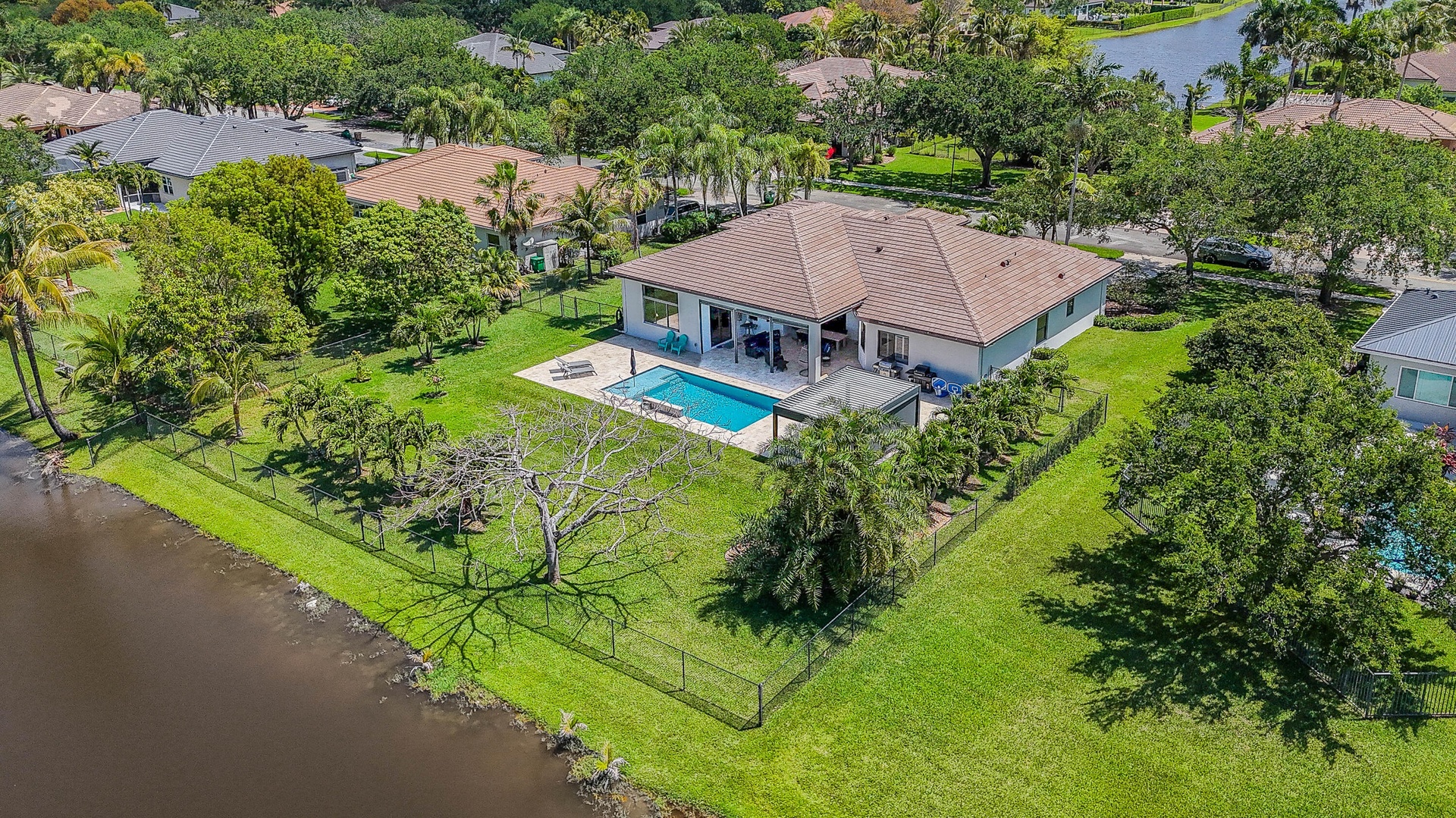 The moment you enter, this home captivates you with its soaring ceilings, spacious layout, and thoughtfully upgraded features. Highlights include impact windows, a newly tiled roof in 2025, a car elevator in the garage, & an integrated vacuum system. Two AC units, 2026 & 2019, and 2024 water heater. The gourmet kitchen boasts premium Samsung glass-door appliances, quartz countertops, an island, and an extended bar ideal for entertaining. Electric shades in the living area and renovated bathrooms reflect refined taste throughout. The expansive patio—with electric screen shades—overlooks a stunning pool oasis complete with waterfall, lighting, heating, and a saltwater system. Enjoy extraordinary sunsets & canal view! The gazebo with sun shades, Exceptional home ready for you!