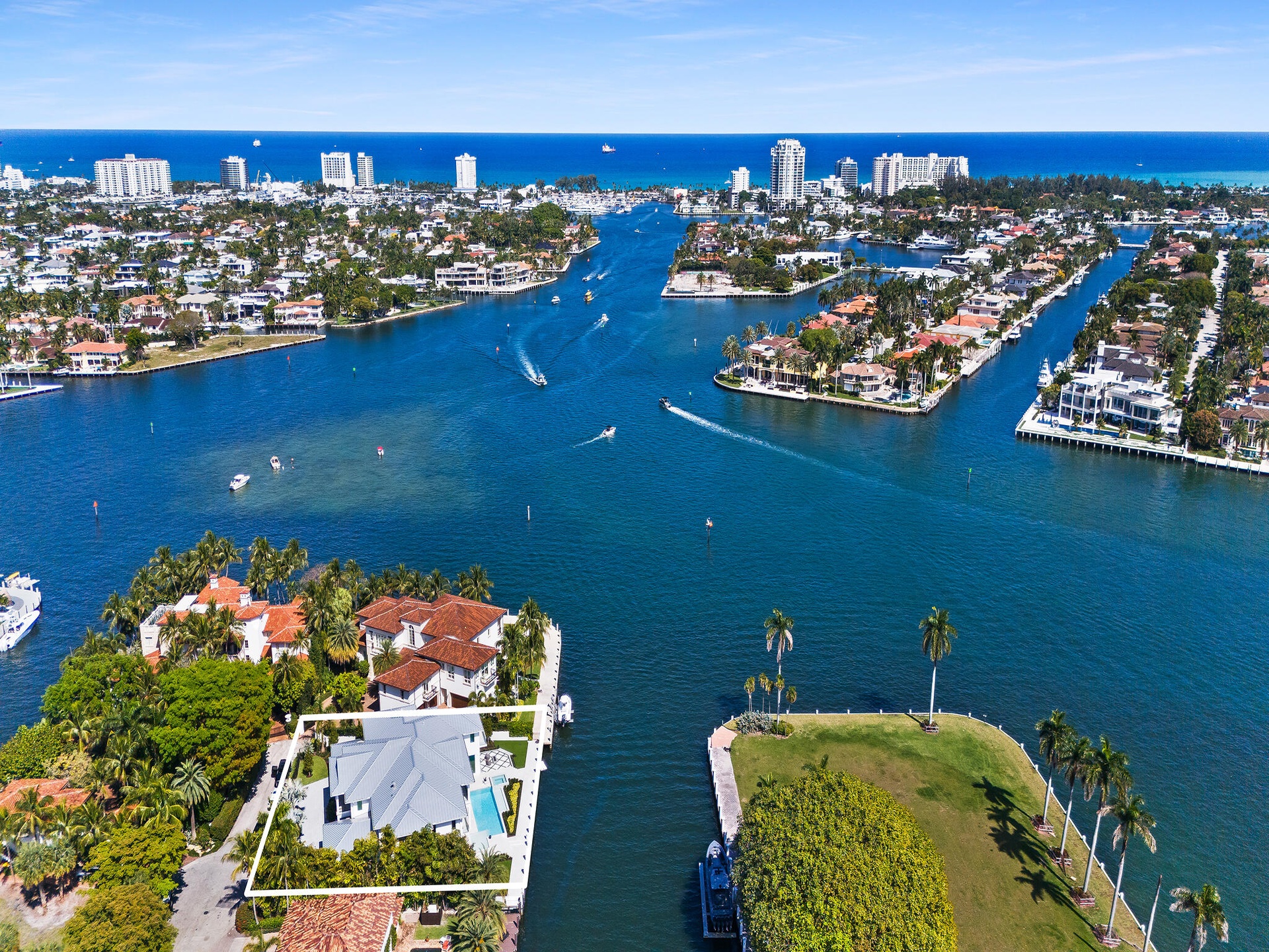 PANORAMIC VIEWS OF INTRACOASTAL WATERWAY! PRIME HISTORIC RIO VISTA LOCATION! 130' PROTECTED MEGA YACHT DOCKAGE BY PORT EVERGLADES! SOUTHERN EXPOSURE LOT FACES PREVAILING SOUTH EASTERLY SEA BREEZES AND PRIME SUNSHINE YEAR ROUND! 2 MINUTE GOLF CART RIDE TO THE YACHT CLUB OR DOWNTOWN LAS OLAS! BRAND NEW CUSTOM COASTAL MODERN ESTATE HOME WITH SUPER PREMIUM FINISHES! CUSTOM DESIGNED TO MAXIMIZE VIEWS OF INTRACOASTAL WATERWAY WHILE MAINTAINING PRIVACY! GRAND MAN CAVE WITH VIEWS! 2 MASTERS!WALLED & GATED COMPOUND! 4 CAR GARAGE! WIDEST CANAL IN FORT LAUDERDALE, 125' ACROSS! EXCEPTIONAL FINISHES, TWO LAUNDRY ROOMS, MASSIVE SALTWATER POOL AND HOT TUB, ELEVATOR, MARVIN WINDOW PACKAGE, DAYORIS ITALIAN INTERIOR DOORS, ITALIAN CABINETRY AND EXTENSIVE OUTDOOR KITCHEN AREA FOR GRAND SOUTH FLORIDA LIVING!