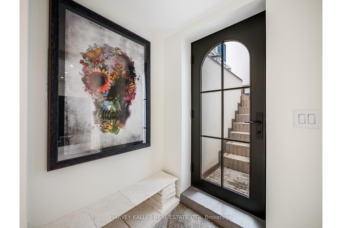 Experience a truly exceptional, fully rebuilt residence in the heart of the Annex, where timeless character meets uncompromising modern design. Completed in July 2023, this home retains only its original façade, with every other element thoughtfully reimagined to deliver over 3,400 square feet of refined living space across four levels. Inside, the home offers 3 spacious bedrooms on the second level, including a stunning principal retreat with a luxurious 5-piece ensuite, while a fully self-contained lower-level suite provides a fourth bedroom or ideal in-law accommodation with its own kitchen, laundry, and private walkout. In total, five beautifully appointed washrooms serve the home, each finished with elevated materials and meticulous attention to detail. Designed by Lyndsay Jacobs Interiors and featured in House & Home and Timeless Living, the interiors showcase custom millwork, restored 1878 stained glass, white oak herringbone floors, and hand-selected marble and limestone finishes imported from Greece. A dramatic three-storey staircase, illuminated by skylights, fills the home with natural light, while curved architectural lines and premium fixtures from Waterworks, Kallista, and Forbes & Lomax create a cohesive, elevated aesthetic throughout. The kitchen is both functional and striking, anchored by custom cabinetry, a 17-foot floating Nero Borghini marble shelf, premium Thermador appliances, and seamless indoor-outdoor flow through a 10-foot bifold door. The living spaces extend outdoors to a beautifully landscaped yard designed for entertaining, as well as a rooftop terrace complete with a saltwater hot tub and gas hookup-offering breathtaking treetop and CN Tower views. The lower level is equally impressive, featuring a custom media room with integrated Bowers & Wilkins surround sound, a 400-bottle climate-controlled wine cellar, and thoughtful additions such as a dog wash station and extensive built-in storage.