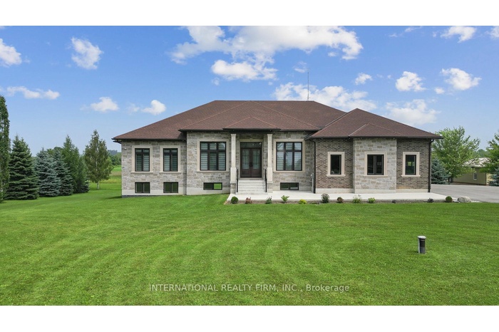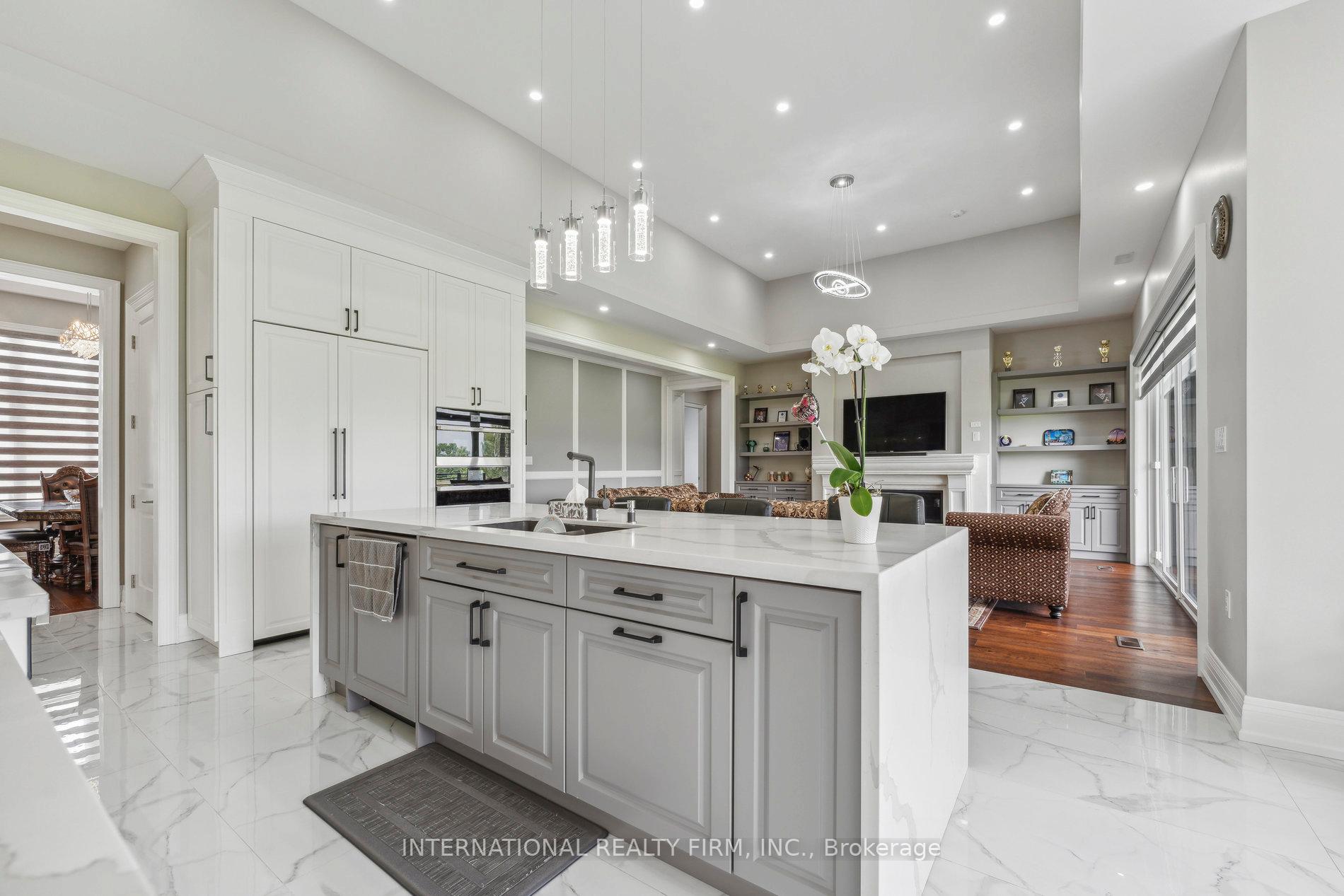 Custom-built bungalow featuring extensive upgrades throughout. A welcoming foyer with over 12-foot ceilings and double doors leads into refined living and dining areas with recessed lighting and coffered ceilings. The family room offers an impressive 14-foot ceiling with recessed and cove lighting. The chef's kitchen is equipped with premium appliances, including a gas range, oversized panel-ready refrigerator and dishwasher, a servery, and a full-size pantry. An oversized waterfall island and abundant cabinetry complete the space. Large windows with custom blinds provide exceptional natural light throughout the home.The primary suite includes a walk-in closet with custom built-ins and a spa-inspired ensuite with a designer tub, towel warmer, and glass shower. A second primary bedroom features its own full ensuite. The mudroom is thoughtfully designed with custom cabinetry, shoe storage, and a built-in bench. The walk-out basement offers the potential to add approximately 3,000 sq. ft. of additional living space. It is partially completed with drywall, electrical, and plumbing, along with provisions for heated floors. Planned features include 9-foot ceilings, a living area, full kitchen, two bedrooms, theatre room, gym, sauna, and two bathrooms. Oversized patio doors and gas connections are available on both levels. Built to a standard well above minimum code requirements.