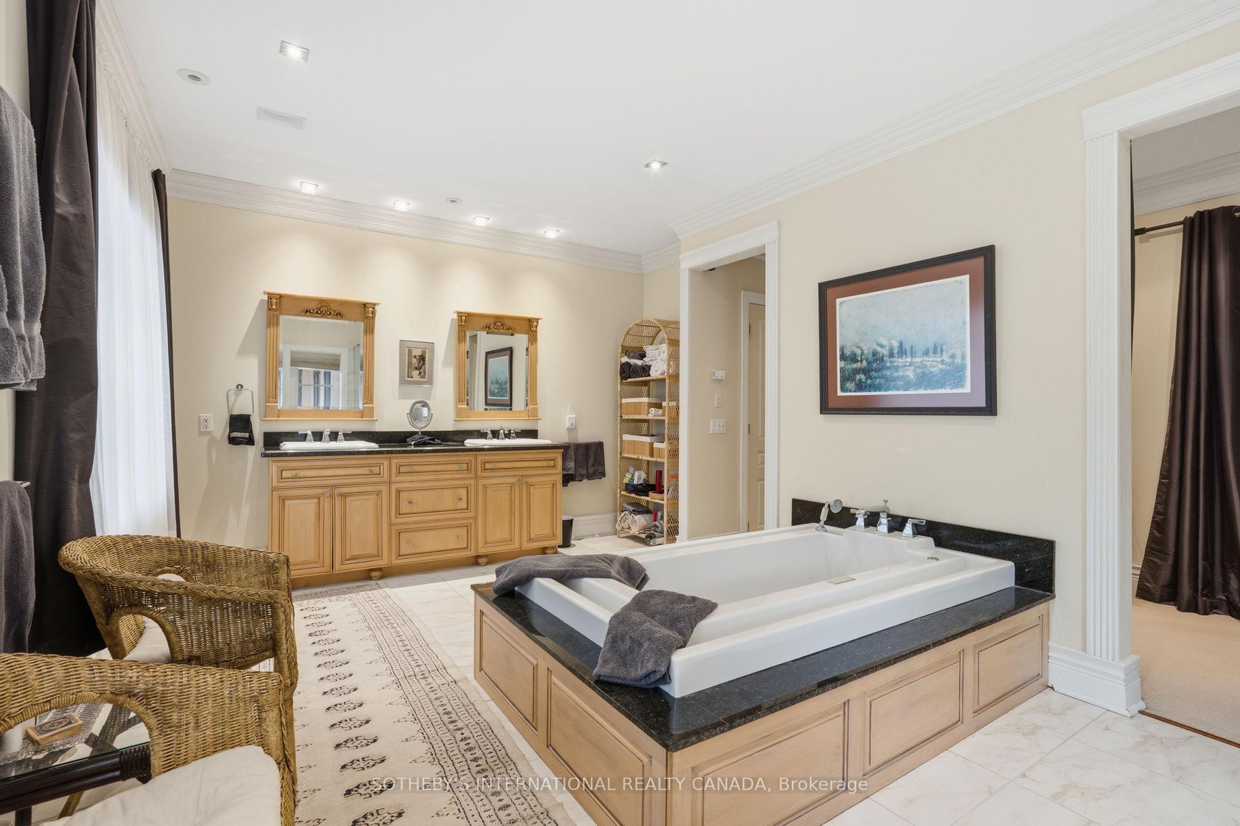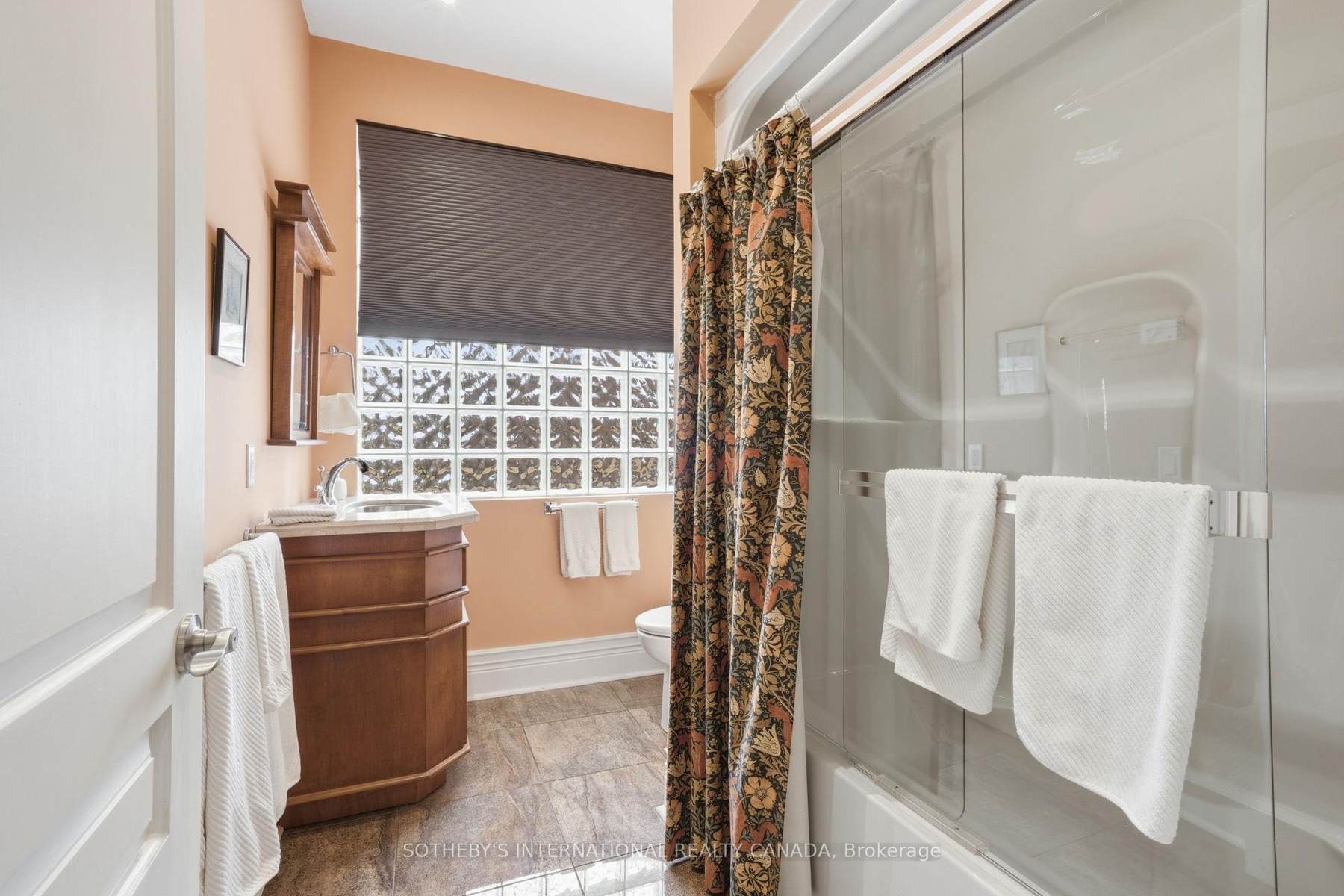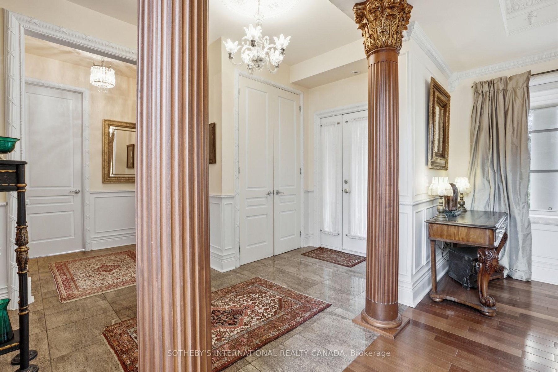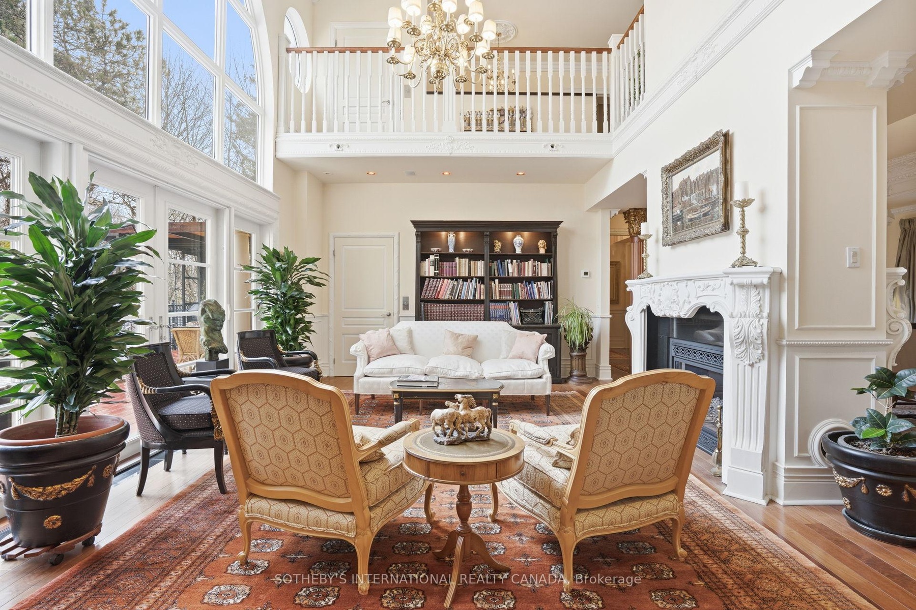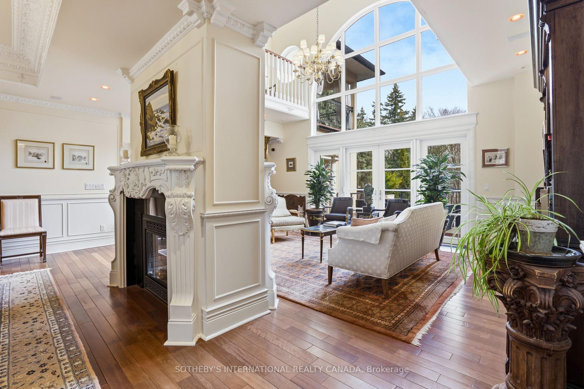 Welcome to 55 Pine Ridge Drive, a custom residence set on a private, tree-lined ravine lot near the Bluffs. Rebuilt approximately 15 years ago on the original 1954 foundation, this bright, generously scaled home offers refined millwork, Brazilian cherry hardwood, porcelain tile, multiple fireplaces, a hydraulic elevator, and a dramatic two-storey great room with a striking Palladian window overlooking the gardens. The custom kitchen was designed with both function and entertaining in mind, featuring dark-stained maple cabinetry, Nero Assoluto granite, a centre island with raised bar and hidden buffet table, two Miele dishwashers, multiple sinks and work areas, side-by-side KitchenAid fridge and freezer, Electrolux wall ovens and microwave, Miele steam oven, induction cooktop, dedicated gas wok burner, and a bright breakfast area with walkout to the deck. The home offers five bedrooms and five full bathrooms across three levels. The upper level includes a private primary retreat with fireplace, balcony, walk-in closets, dressing area, and five-piece ensuite, along with additional suite-like bedroom space and an upper family room. The lower level adds a recreation room, gym, steam room, hot tub, wet bar, guest bedroom, and walkout access. Outside, the landscaped grounds unfold as a private retreat with extensive decking, terraces, pond and waterfall, pool house, and gas-heated saltwater pool. Located on one of the most desirable streets, close to the Bluffs, parks, schools, Kingston Road amenities, Eglinton GO, Scarborough GO, Kennedy Station, and Highway 401.