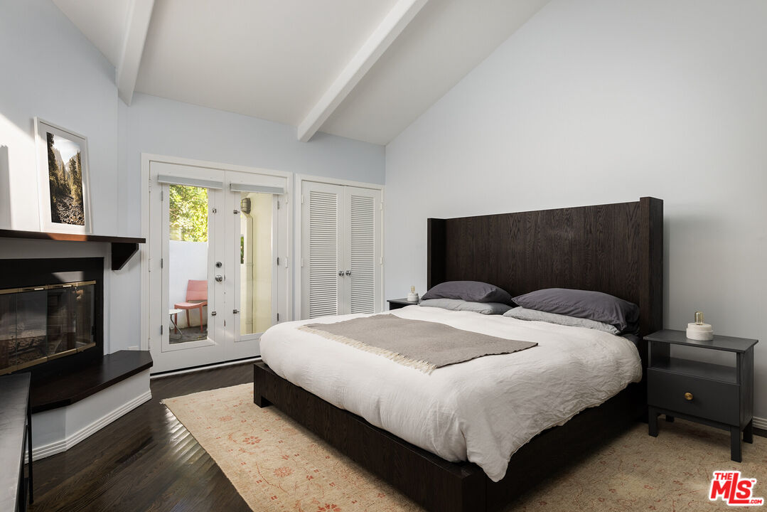 Few homes carry a legacy quite like this one. Originally created in 1951 by celebrated modernist architects A. Quincy Jones and Whitney R. Smith, 12317 Rochedale Lane stands as one of Los Angeles' most storied architectural addresses - thoughtfully renovated and available for the first time in years. Set on a quiet cul-de-sac in the coveted Crestwood Hills community, this 4-bedroom, 4-bathroom contemporary spans 2,659 square feet on a lush 9,102 sq ft lot. The striking all-white exterior with its clean geometric lines and sculptural form makes an immediate impression, while inside, soaring vaulted beam ceilings and walls of oversized windows fill every room with natural light framing lush canyon treetops. Rich dark hardwood floors run throughout the generous open living and dining areas, creating a warm, grounded contrast to the bright and airy architecture. The chef's kitchen is a true showpiece, outfitted with professional-grade Viking appliances including a French door refrigerator and double wall oven, bold navy cabinetry, warm butcher block countertops, floating wood shelves, and designer pendant lighting. French doors open directly to the gardens, making indoor-outdoor living completely effortless. Outside, the private grounds are nothing short of magical. A stone waterfall cascades into a tranquil pond surrounded by lush, colorful plantings, while a flagstone patio with a fire pit sets the scene for evening gatherings under string lights. Multi-level terraced gardens with mature palms and tropical foliage rise up to a large, flat grassy lawn with sweeping open-sky canyon views that glow at golden hour. A fourth bedroom suite on the lower level, with its own entrance and three-quarter bath, completes the home as a private guest retreat, office, or studio.