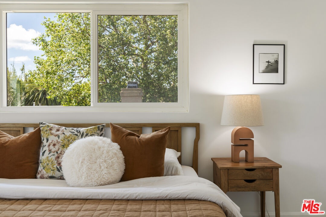 Located in prime Venice on a wide, tree lined street, this 3-bedroom, 3-bath home sits back from the road with a rare, generous setback, creating a private, oasis-like feel. Large windows throughout frame lush greenery and fill the home with natural light. The home is ready to be reimagined and has incredible upside. A proper entry leads to a dedicated dining room that flows into an expansive living room overlooking the vibrant front yard. The kitchen opens to a patio, ideal for outdoor dining and entertaining. A detached shed offers potential for an ADU or an additional bedroom, flex space. One bedroom with an en-suite bath is located on the main level. Upstairs, a landing connects two spacious bedrooms. The primary suite faces the front yard and features abundant light and an en-suite bath and walk in closet. The second bedroom is also generously sized, with a walk-in closet and a private balcony with views. The front yard offers ample space with room for a pool and presents endless possibilities. Ideally located near the new Bodega & Palms, Beethoven Market, Superba, Abbot Kinney, Penmar Golf Course and Park, and the shops and restaurants along Rose Avenue. This is Venice.