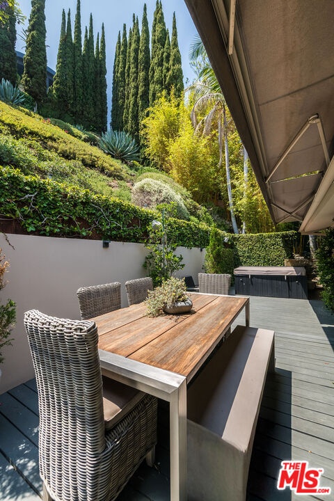 Sophisticated Contemporary for lease in prime Lower Doheny. Fabulous location, close to the chic stores and restaurants on Sunset Blvd. This gated mid-century is located on a quiet cul-de-sac street, surrounded by lush & mature landscaping. A bright & airy atmosphere awaits w/an open floor plan & floor to ceiling windows, allowing for an influx of natural light & views from all rooms. The spacious living room features high ceilings, state of the art sound system & cozy fireplace, & seamlessly flows into the kitchen complete w/high-end stainless-steel appliances & breakfast bar. The master suite boasts floor to ceiling glass, a beautifully remodeled en-suite bathroom & custom built-ins. 2 additional guest bedrooms, one w/custom walk-in closet. An outside patio provides the perfect spot for entertaining w/BBQ, hot-tub & extensive grounds complete with city views. Additional features include attached 2-car garage, security/surveillance system & smart-home technology. Can be available furnished or unfurnished.