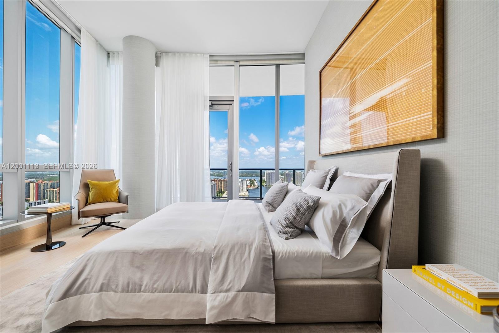 Occupying the 32nd and 33rd floors of Chateau Beach Residences, this fully furnished residence spans over 9,000 square feet, with four bedrooms, five full bathrooms, and three half bath. Floor-to-ceiling glass surrounds the living spaces, capturing sweeping views of the Atlantic Ocean, Intracoastal Waterway, and the skylines of Miami and Fort Lauderdale. A private in-residence elevator connects both levels, where expansive entertaining areas include a grand great room, formal and informal dining, and a media lounge.