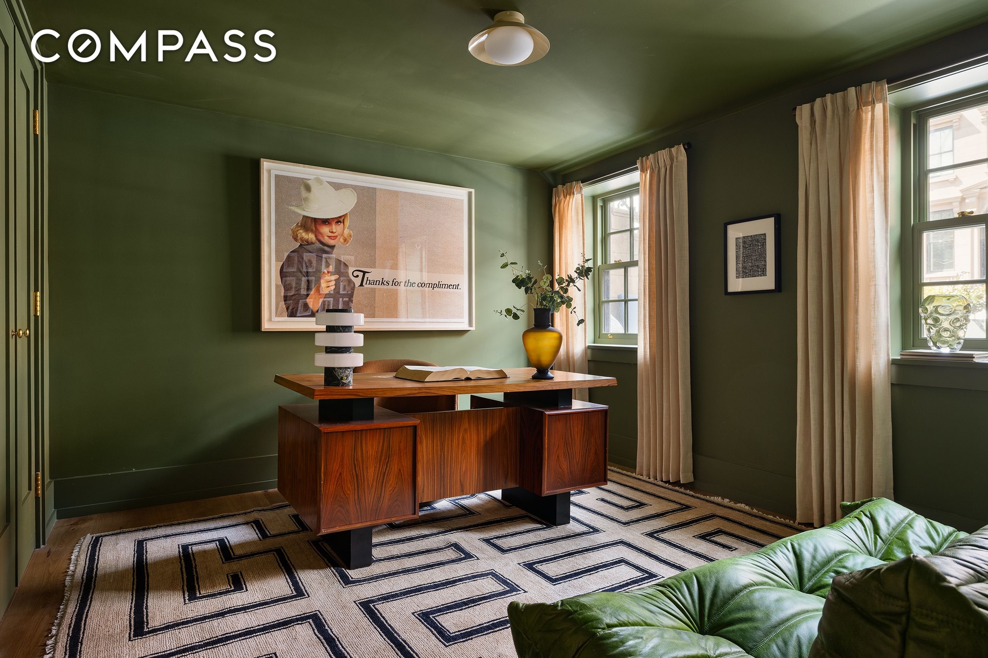 The parlor level is centered around entertaining, with generous ceiling heights and a natural flow between living and dining. Below, the kitchen opens directly to the private garden, creating a more informal setting for the quiet rituals of daily life.