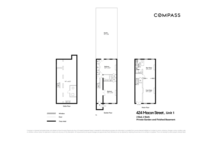 Garden floor: A private entry allows for main access below the stoop stairs. On this level, you will find two bedrooms and one full bath accessed via a common hallway. Both bedrooms feature ample closet space. The south-facing bedroom features a wall of closets and direct access to your private sun-flooded garden ideal for summer gatherings and al-fresco dining! At the entrance, there is a covered area to park your bike.