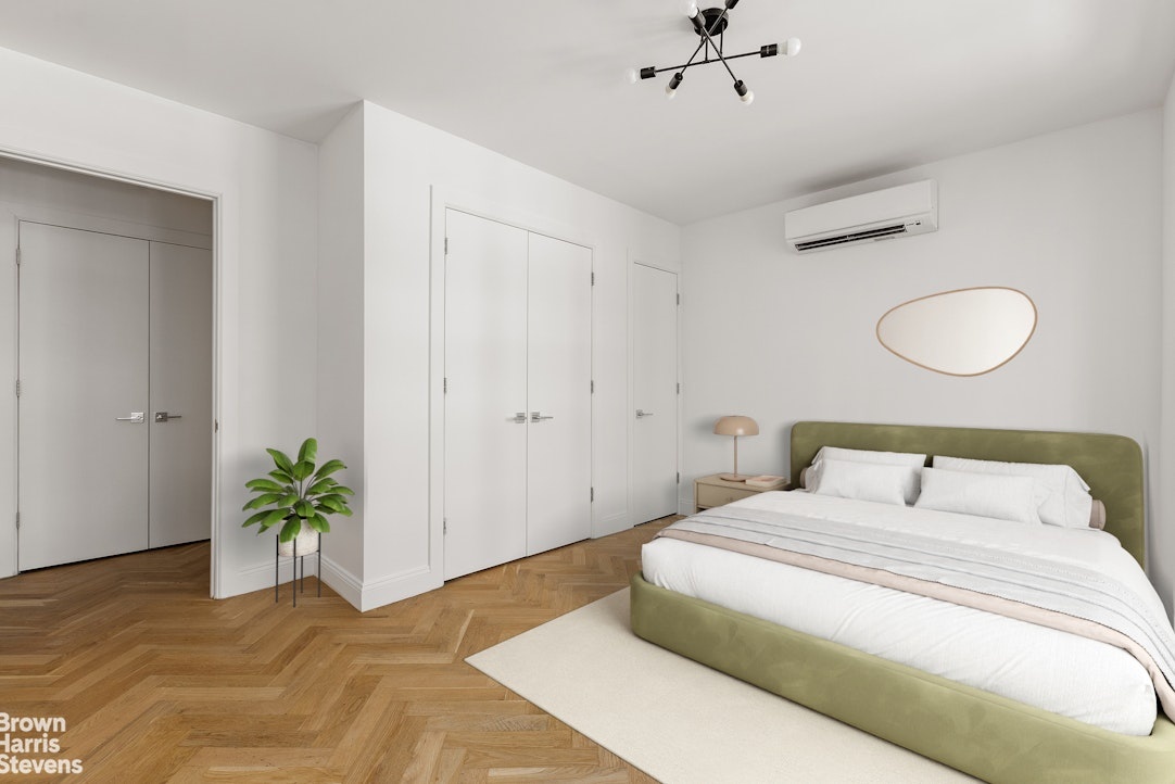Own a piece of Brooklyn at the vibrant crossroads of three iconic neighborhoods (Prospect Heights, Clinton Hill, and Fort Greene). 531 Vanderbilt Avenue, 4A is an impeccably proportioned one-bedroom home nestled in a charming, 18-unit boutique building. This wonderful home offers a rare blend of spectacular finishes and incredibly low carrying costs, making it a standout opportunity. Oversized double-paned windows floods the spacious living area with natural light, perfectly highlighting the elegant herringbone wood floors that run throughout the home. For ultimate comfort and convenience, the home features central heating and air conditioning alongside an in-unit washer/dryer.