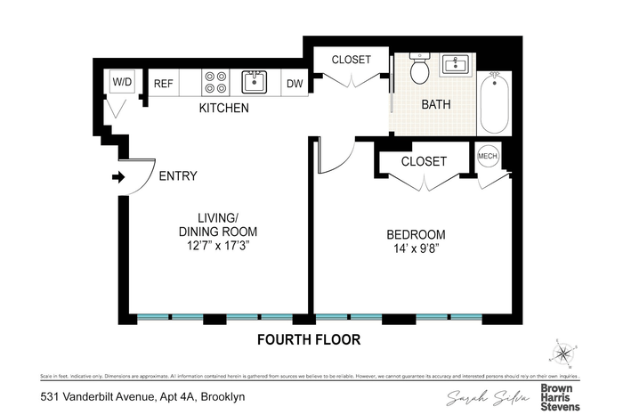 Own a piece of Brooklyn at the vibrant crossroads of three iconic neighborhoods (Prospect Heights, Clinton Hill, and Fort Greene). 531 Vanderbilt Avenue, 4A is an impeccably proportioned one-bedroom home nestled in a charming, 18-unit boutique building. This wonderful home offers a rare blend of spectacular finishes and incredibly low carrying costs, making it a standout opportunity. Oversized double-paned windows floods the spacious living area with natural light, perfectly highlighting the elegant herringbone wood floors that run throughout the home. For ultimate comfort and convenience, the home features central heating and air conditioning alongside an in-unit washer/dryer.