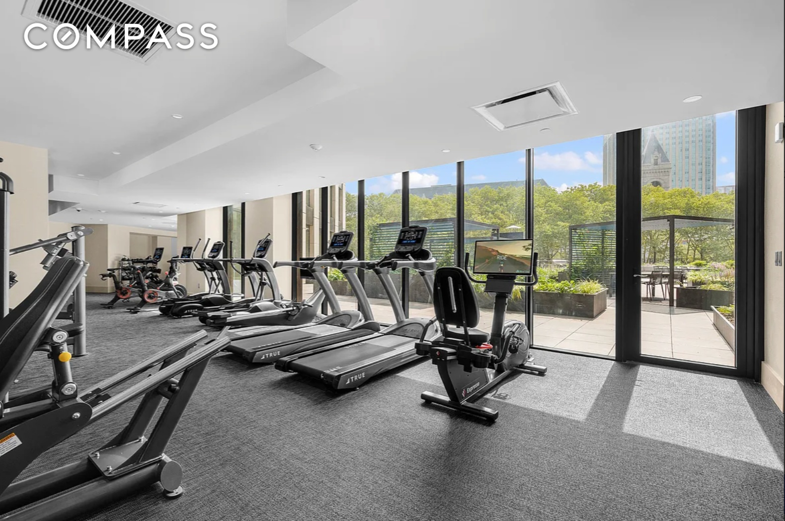 One Clinton is a full-service condominium offering over 20,000 square feet of thoughtfully designed amenities, including a 24-hour doorman and resident manager; a large fitness center with sauna, hot tub, yoga studio, and Peloton bikes; a landscaped terrace with grilling and lounge areas; a children’s playroom with adjacent outdoor space; a media room; library and co-working spaces; and a dramatic sky lounge with terrace offering panoramic views of Manhattan and New York Harbor.