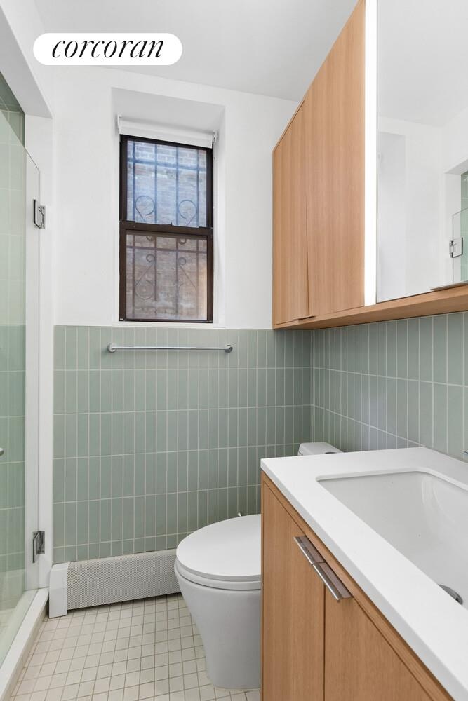 Welcome to Unit 4CD at 99 Avenue B, where modern elegance meets historic charm in the vibrant heart of the East Village. This lovely two-bedroom, one-bathroom coop, perched on the fourth floor of a classic pre-war elevator building, offers a sophisticated yet welcoming living space that’s been meticulously designed and maintained by the architect owners. As you step inside, you'll be greeted by a spacious open-concept layout that effortlessly marries style with function, thanks to designer finishes and neutral tones that complement any decor. The kitchen stands as a culinary masterpiece, equipped with state-of-the-art appliances that include a Viking oven, Wolf induction cooktop, Fisher & Paykel dishwasher, a Bertazzoni refrigerator, and a water filtration system. Granite countertops and floor add to the sleekness of the kitchen. Meanwhile, the bathroom serves as a private sanctuary, featuring high-quality fixtures and finishes that promote relaxation and luxury including a mosaic tiled glass stall shower with a rain showerhead, and a toilet with a bidet installation.