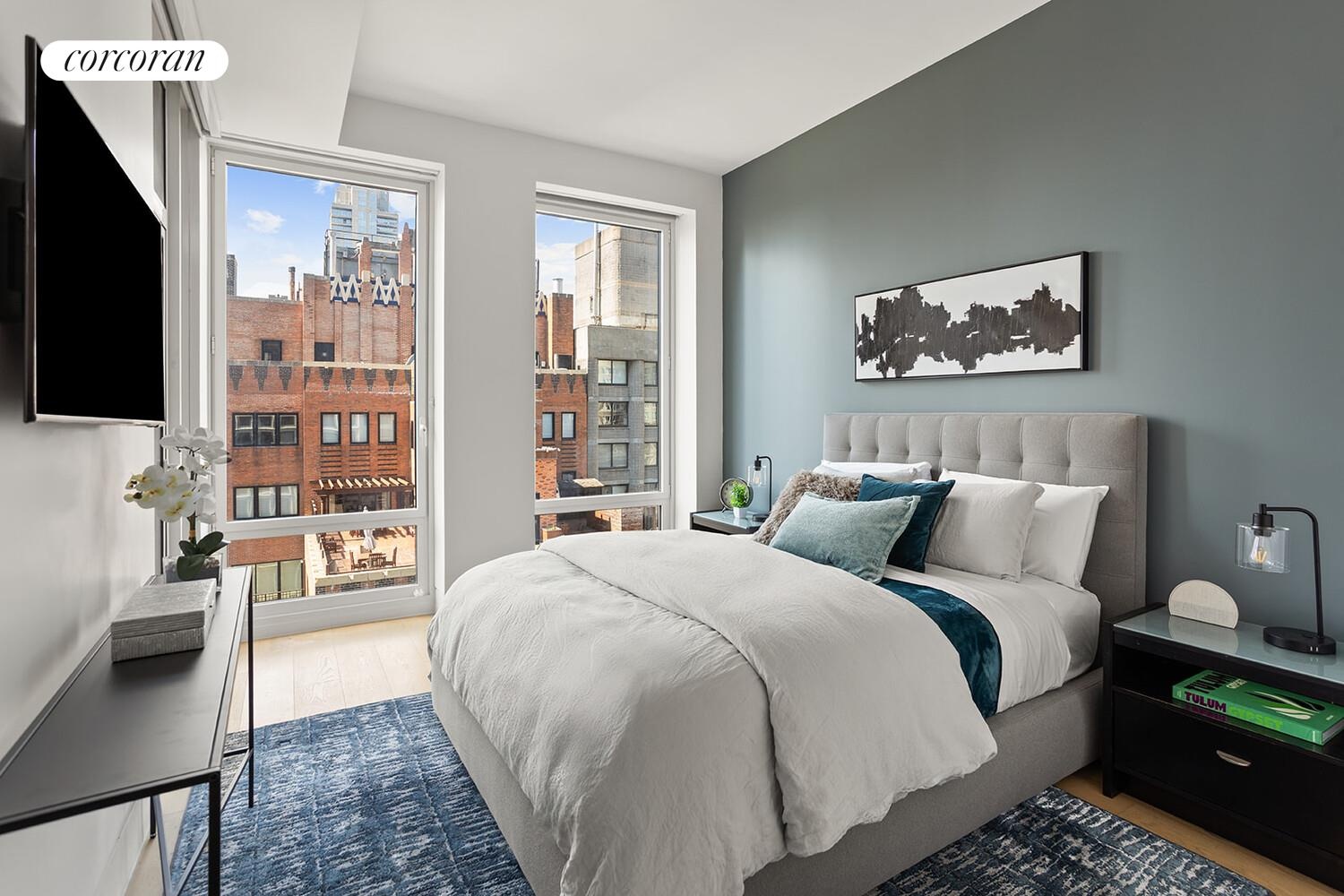Residence 24D is a sun drenched, turn key corner two bedroom in one of the Upper West Side's most sought after new developments, The Park Loggia.