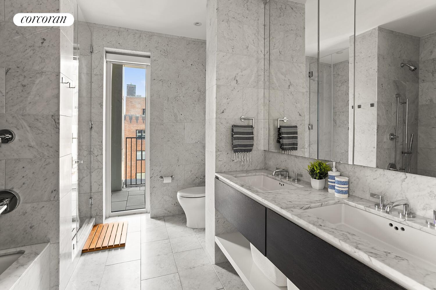 The serene primary suite provides direct access to a private loggia, a spacious walk-in closet, and a luxurious windowed five-fixture bath. Warm, sophisticated interiors are highlighted by high ceilings, wide-plank white oak flooring, quartzite kitchen countertops, Gioia Venatino marble bathrooms, and beautifully crafted custom millwork. A GE washer and vented dryer complete this exceptional offering. Immediate occupancy is available.