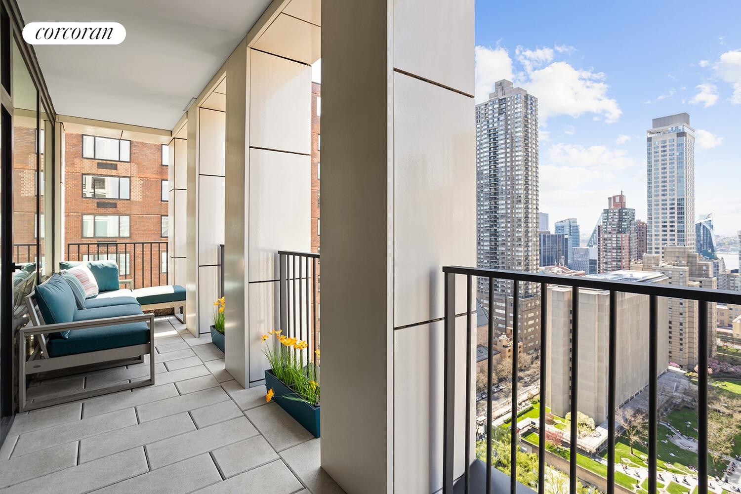 Residence 24D is a sun-drenched, turn-key corner two-bedroom in one of the Upper West Side's most sought-after new developments, The Park Loggia. Boasting coveted south and west exposures and private outdoor space, this exceptional home is ready for immediate enjoyment.
