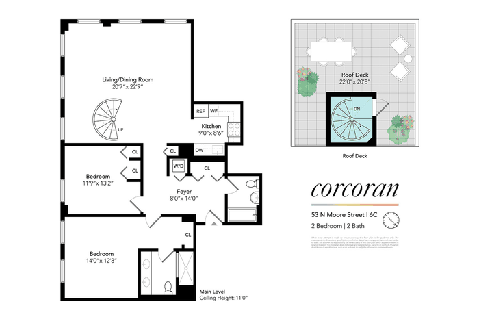 A grand spiral staircase leads to your own private roof deck - an impressive 471 square feet - where iconic views of One World Trade Center and the TriBeCa skyline make for an unforgettable backdrop for entertaining or simply unwinding above the city.