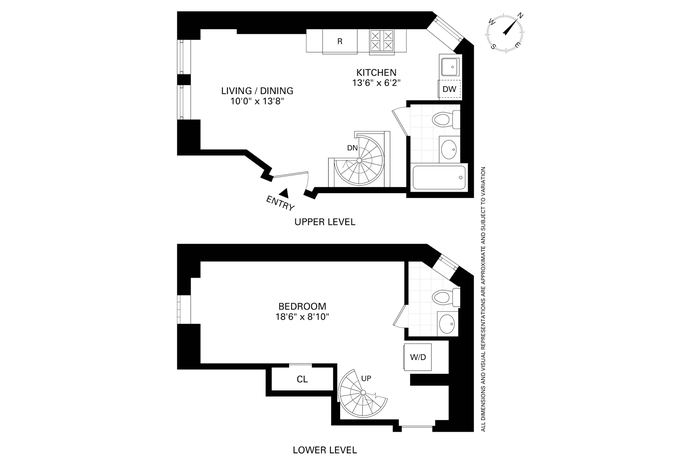 Experience the luxury of two story living in this meticulously renovated 1 bedroom, 1.