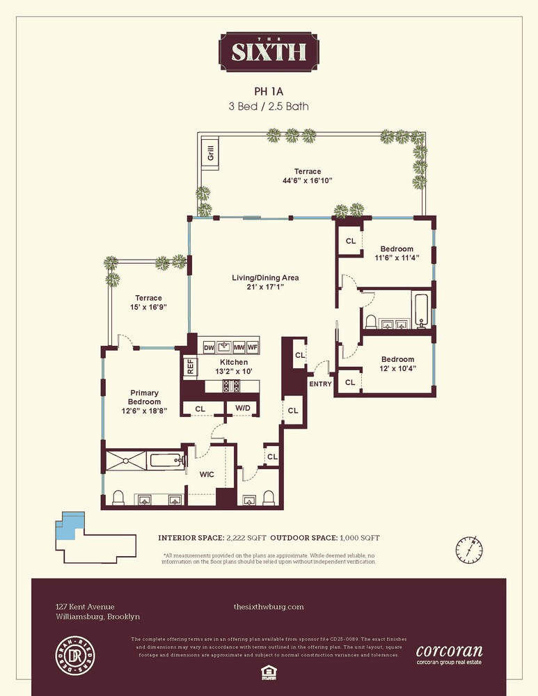 We have saved the best for last! A magnificent 3 bed PENTHOUSE with over 1000 SF of outdoor space, WATER views, a soaking tub with a view, and a massive Great Room! This is the TROPHY unit in the building! For the first time in its history, prime North Williamsburg will finally have a condo that blends the best of European craftsmanship with the creativity and individuality for which the neighborhood has become so beloved. Designed by award-winning architects BKSK from the inside out, with Domino Park, the Bedford L stop, and the Ferry landing one block in each direction, plus a host of international luxury brands and artisanal offerings right outside your door. This boutique collection of 43 timeless homes, ranging from 1 to 4 bed units, including a unique offering of 14 spectacular penthouses, offers something for everyone. Every unit in the building includes a private outdoor space, ranging from loggias and balconies, to terraces, roof cabanas, and private roofdecks, all with water hookup, and many with chef's style gas grills.