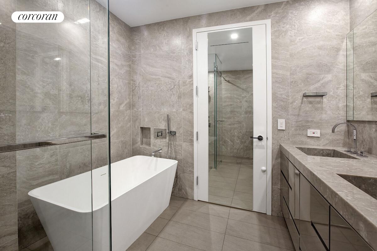 Currently configured as a two-bedroom residence and a one-bedroom with home office, both apartments are in pristine condition and fully outfitted with integrated smart home systems, custom built-ins, and refined, high-end finishes. The proposed combination presents a seamless opportunity to design a home tailored to your vision, without starting from scratch.