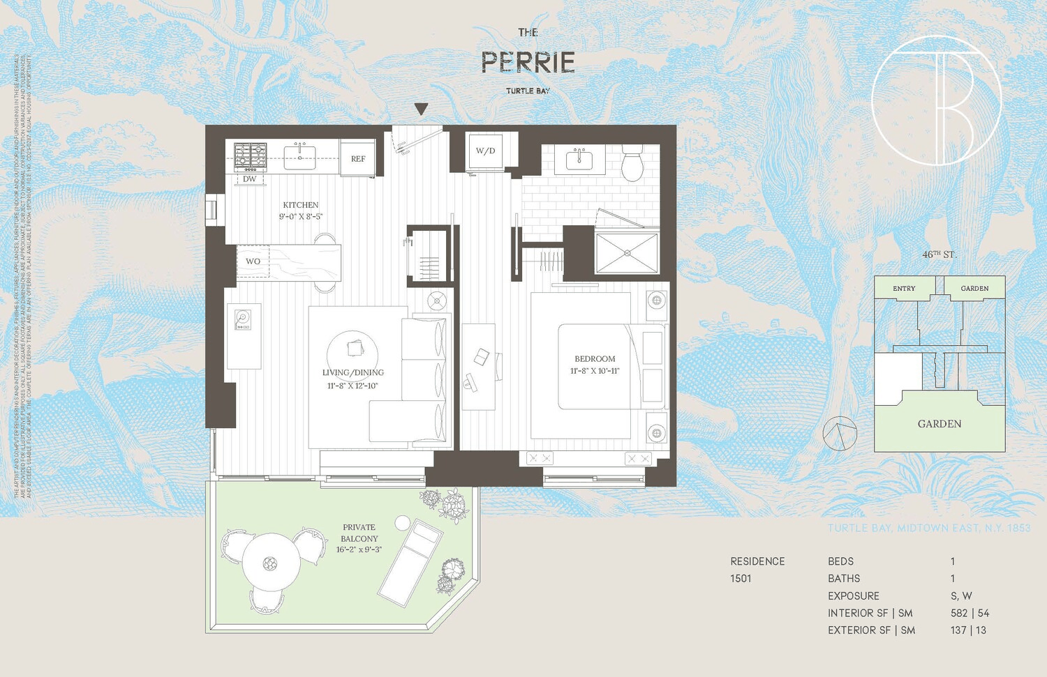 This well-designed 582-square-foot one-bedroom condo has a oversized 137 square-foot balcony that extends the living space outdoors. The Perrie is a full-service development with a streamlined purchase process and uniquely flexible ownership policies.