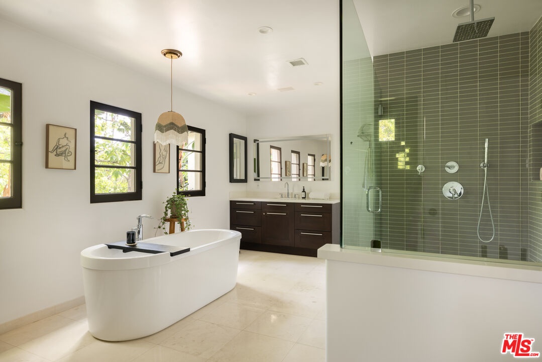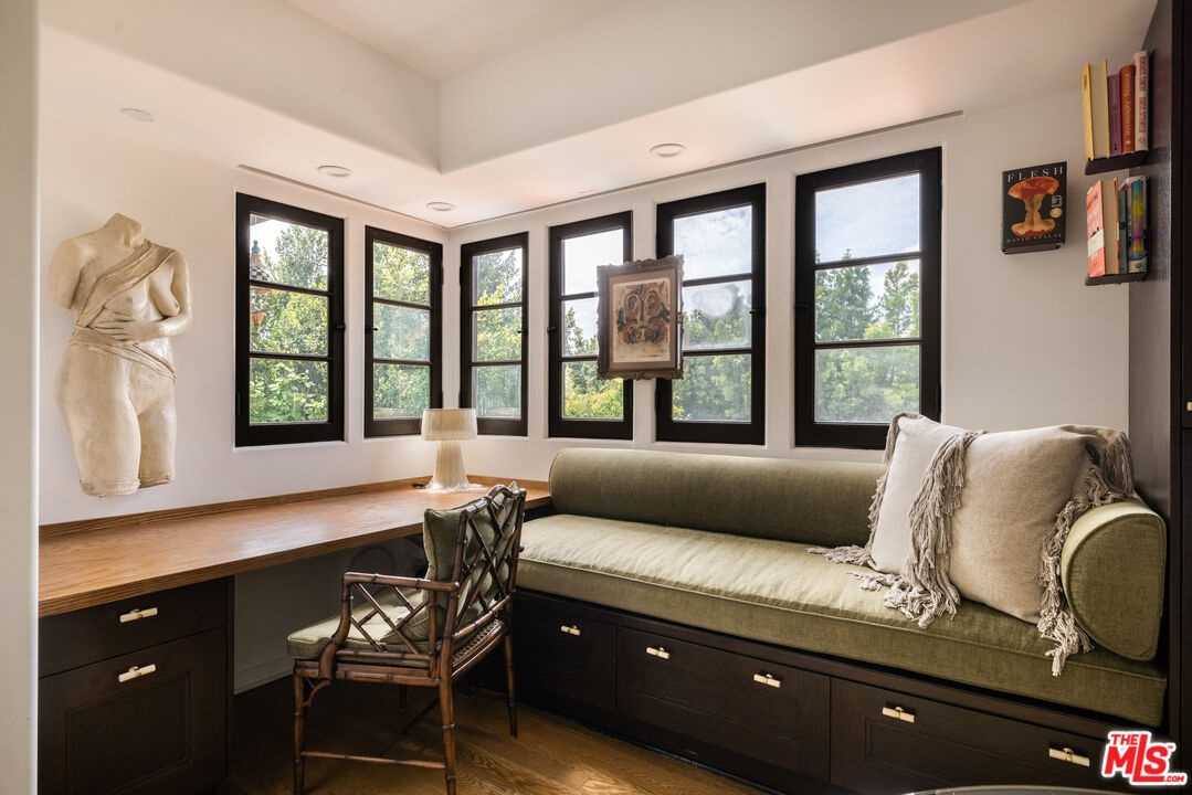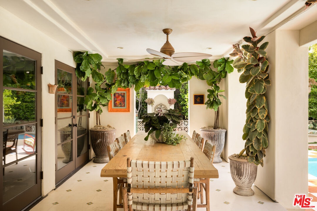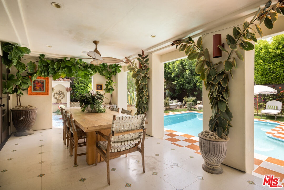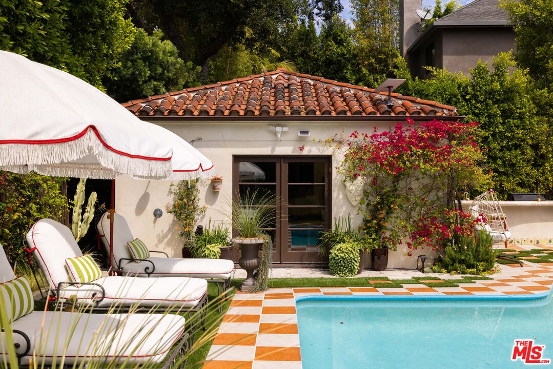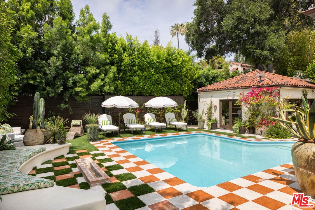 Tucked into the foothills, this gated Mediterranean Architectural Digest-published residence offers privacy, scale, and effortless indoor-outdoor living - available as a fully furnished lease. Beautifully appointed, the home features warm hardwood floors, designer-curated furnishings, and a seamless flow throughout. The gourmet kitchen, complete with high-end appliances, ample storage, and an oversized island, opens to a sunlit family room with French doors leading to the outdoors. A library, powder room, and two en-suite guest bedrooms complete the main level. The upper level offers an additional en-suite guest bedroom and a generous primary suite with a walk-in closet, spa-like bath, and private terrace with city and hillside views. Outside, the property unfolds into a lush, resort-like setting with a covered terrace, pool, hot tub, outdoor kitchen, firepit, and multiple areas for dining and entertaining. A separate detached pool house provides added flexibility. Fully gated with a double entry and security cameras. Ideally located near Runyon Canyon and Wattles Garden Park, and just minutes from Hollywood, West Hollywood, and the Sunset Strip. Furnished lease only. 13-month minimum term.