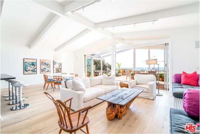Set along coveted Broad Beach, this thoughtfully reimagined coastal home captures the essence of modern Malibu living, effortless, refined, and deeply connected to the ocean. Expansive accordion doors dissolve the boundary between indoors and out, opening to a generous beachfront patio designed for both intimate mornings and sunset gatherings. Inside, soaring beamed ceilings frame the main living spaces, where a painted brick fireplace, built-in seating, and a relaxed media room create a warm, inviting atmosphere. The kitchen is sleek and functional, anchored by stainless steel appliances and a distinctive painted concrete floor that adds a subtle, artistic edge. Upstairs, dual primary suites take in sweeping Pacific views and share a cozy, book-lined den as an ideal retreat. Four additional en-suite bedrooms open to a tranquil interior courtyard, offering a rare balance of privacy and connection. Completely updated with a confident, understated design sensibility, this is a true Broad Beach escape, easy, elevated, and designed for the rhythm of coastal living.